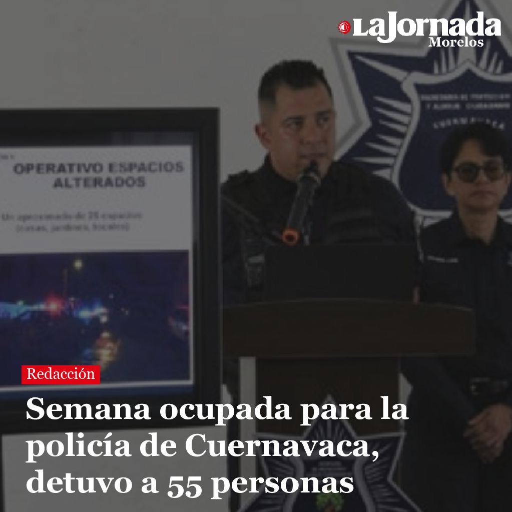 La Secretaría de Protección y Auxilio Ciudadano (SEPRAC) de Cuernavaca informó que del 20 al 26 de mayo se detuvieron a 55 personas, de las cuales cinco fueron puestas a…