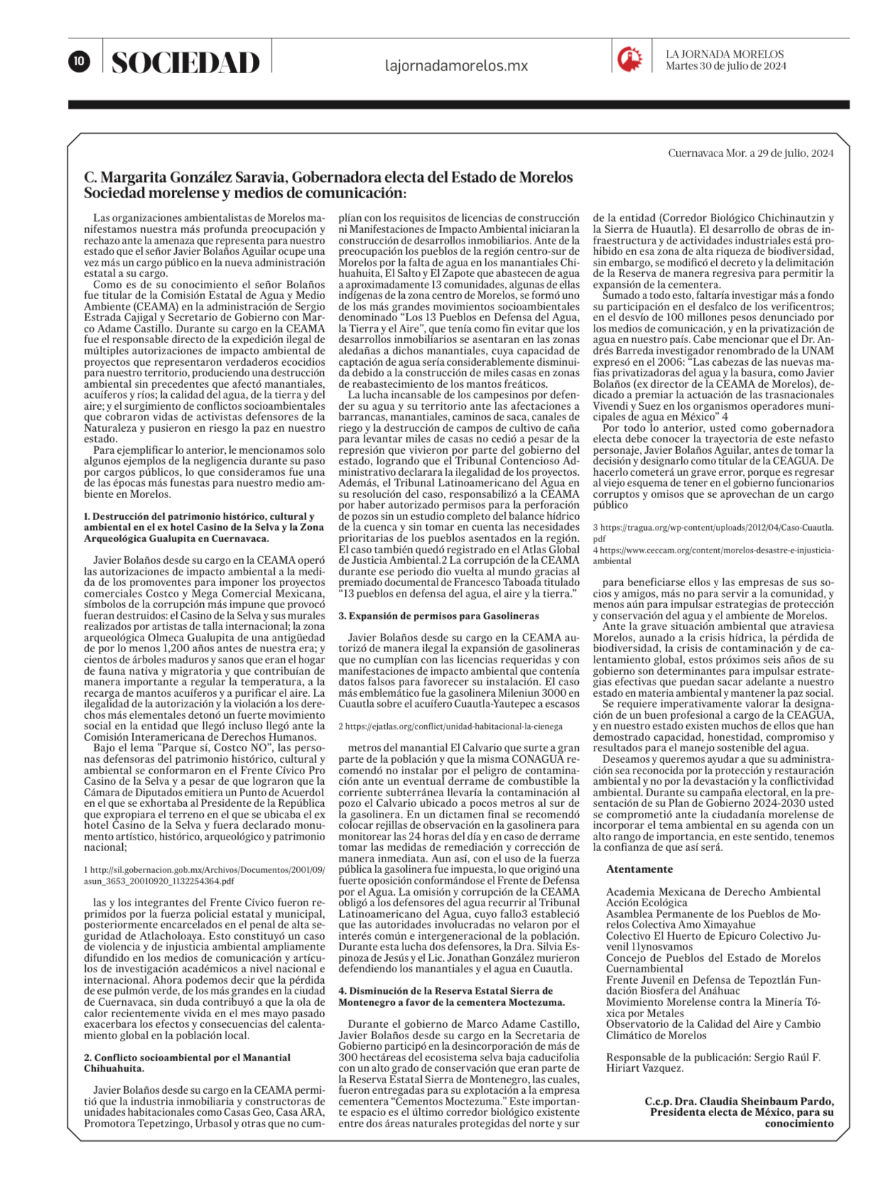 Cuernavaca Mor. a 29 de julio, 2024 Las organizaciones ambientalistas de Morelos manifestamos nuestra más profunda preocupación y rechazo ante la amenaza que representa para nuestro estado que el señor…