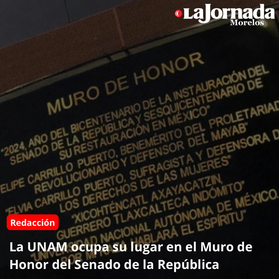 La UNAM ocupa su lugar en el Muro de Honor del Senado de la República