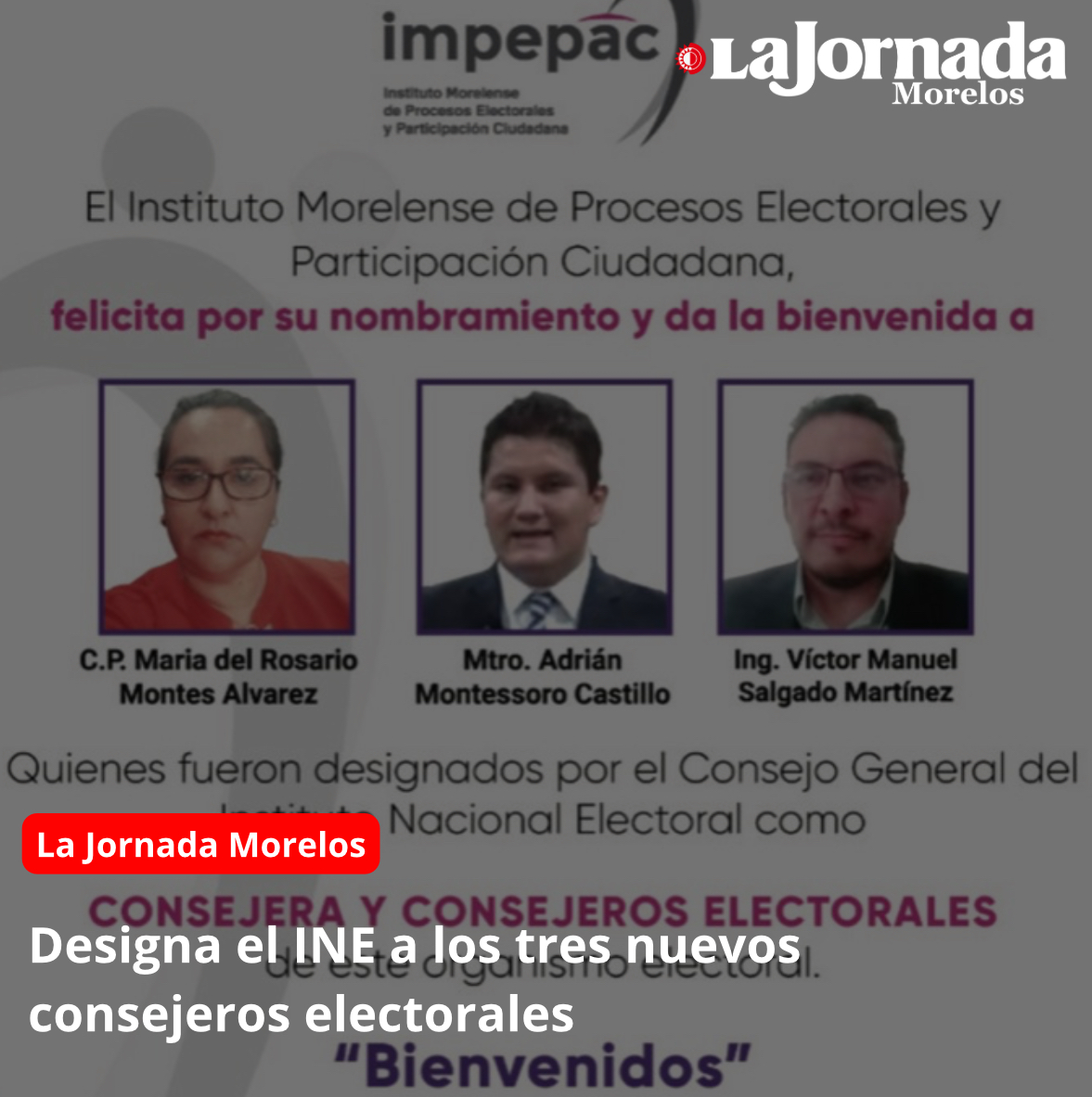 El Instituto Nacional Electoral (INE) designó consejeros para 22 organismos públicos locales electorales, OPLEs del país, en los que incluyó a Morelos donde Isabel Guadarrama Bustamante, Alfredo Javier Arias Casas…