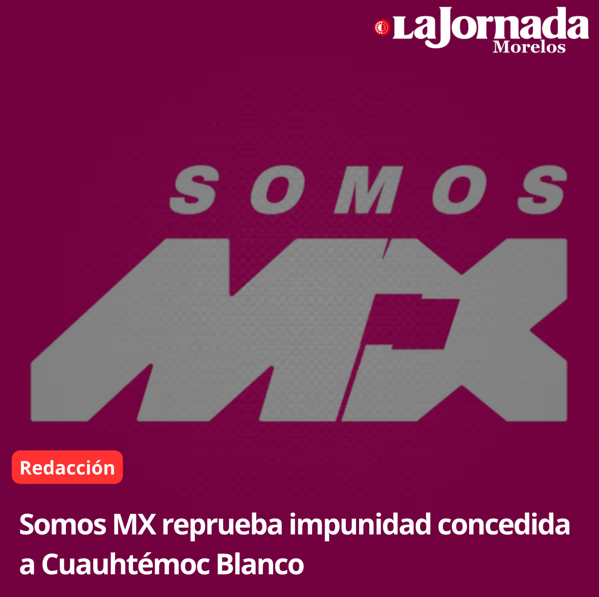 https://www.lajornadamorelos.mx/sociedad/improcedencia-del-desafuero-de-blanco-decision-de-los-diputados-sheinbaum/ https://www.lajornadamorelos.mx/sociedad/que-sigan-las-investigaciones-sobre-cuauhtemoc-blanco-juan-salgado-brito/ https://www.lajornadamorelos.mx/seguridad-y-justicia/fiscalia-mantendra-sigilo-en-investigacion-sobre-cuauhtemoc-blanco/ https://www.lajornadamorelos.mx/sociedad/somos-mx-reprueba-impunidad-concedida-a-cuauhtemoc-blanco/ https://www.lajornadamorelos.mx/seguridad-y-justicia/exigen-colectivos-llevar-a-cuauhtemoc-blanco-ante-la-justicia/