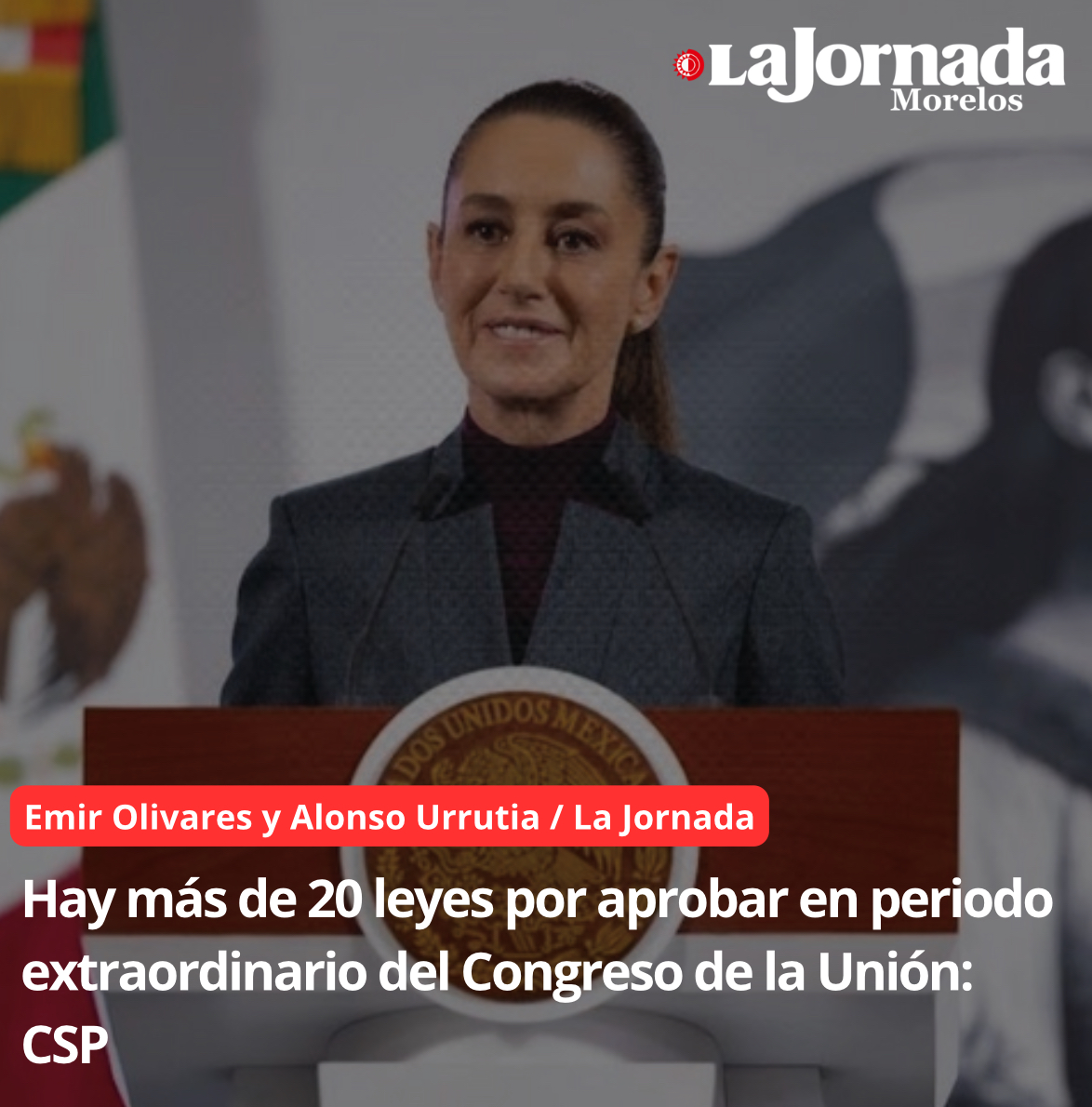 Emir Olivares y Alonso Urrutia / La Jornada La presidenta confió en que durante el periodo extraordinario del Congreso de la Unión se aprueben más de 20 leyes pendientes. A…