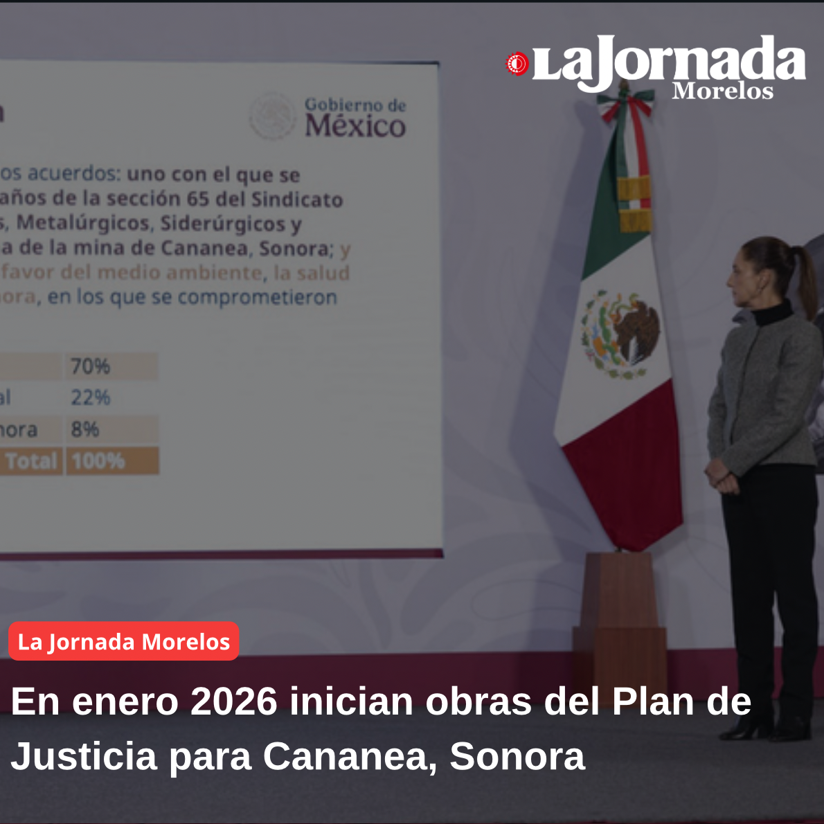 La Presidenta de México, Claudia Sheinbaum Pardo, anunció que en 2026 iniciará la construcción de las obras establecidas en el Plan de Justicia para Cananea, Sonora, las cuales contemplan un…