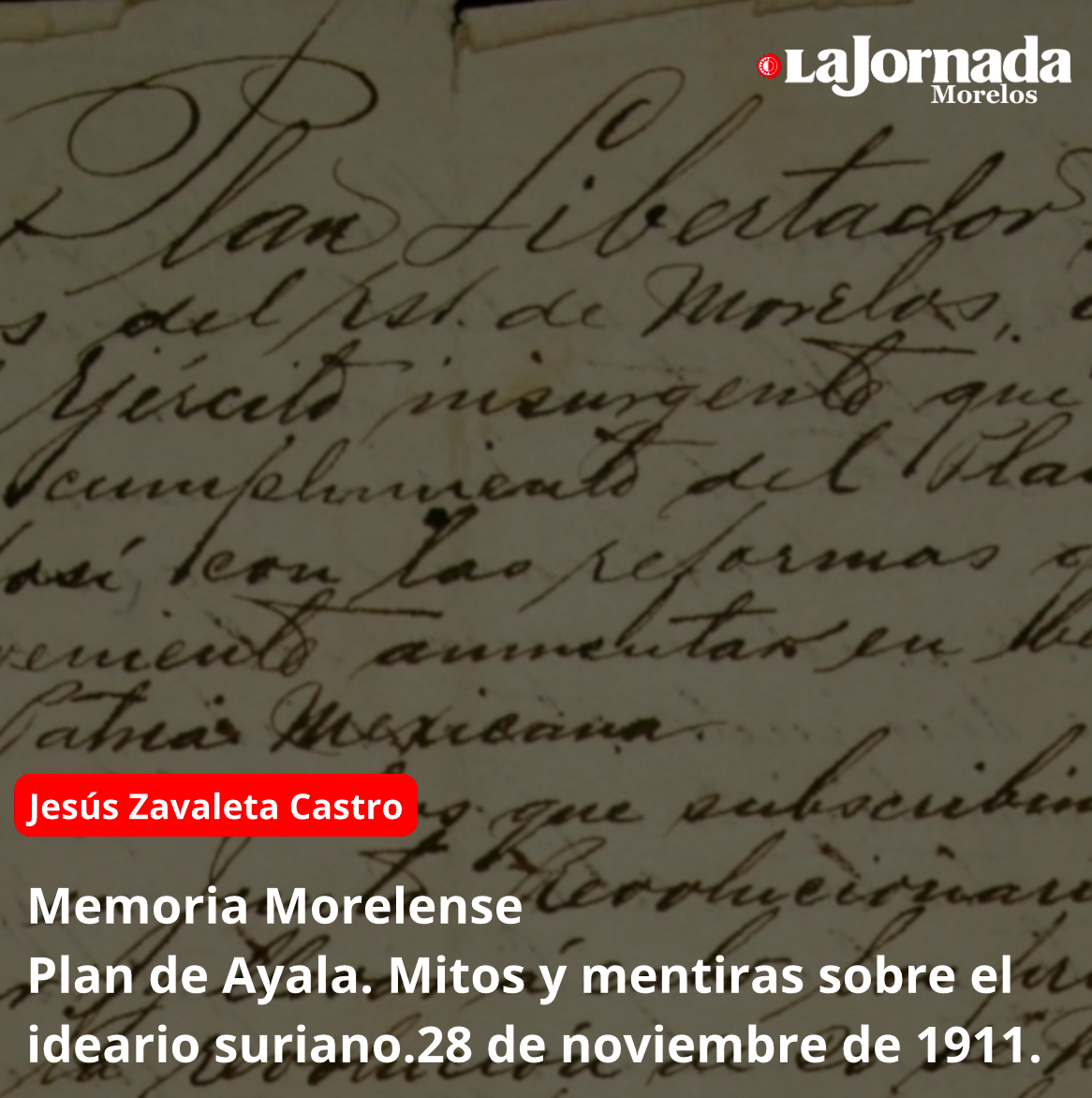 Plan de Ayala. Mitos y mentiras sobre el ideario suriano. 28 de noviembre de 1911. “Los que suscribimos constituidos en Junta Revolucionaria para sostener y llevar a cabo las promesas…