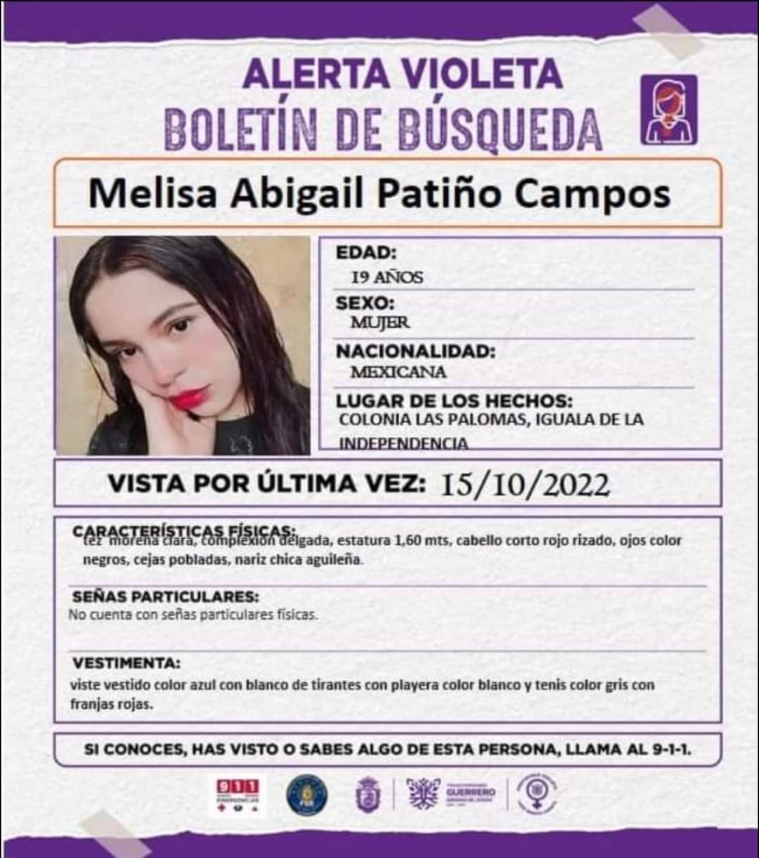 Habría sido privada de la libertad la noche del sábado Buscan también en Morelos a una joven reportada como no localizada en el Estado de Guerrero; llamada Melissa Abigail Patiño…