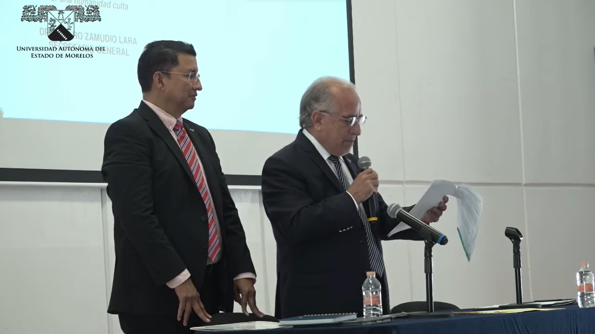 El Rector Gustavo Urquiza lee la terna de candidatos remitida por la Junta de Gobierno / Foto: Captura de pantalla