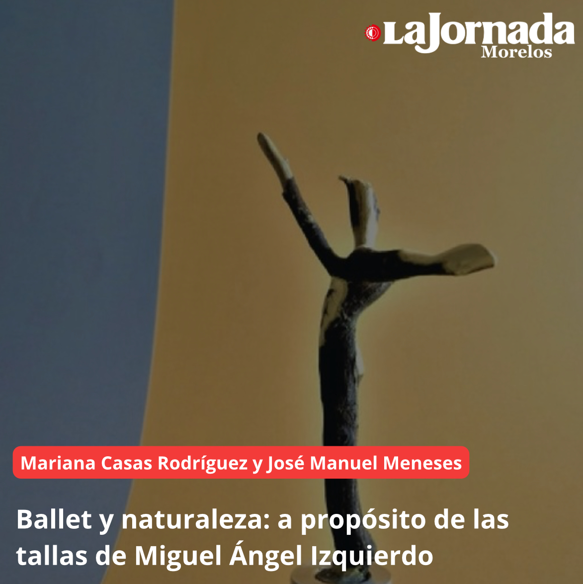 En este contexto, hablaremos del Portafolio de 28 delicadas tallas en madera que amablemente ha compartido con nosotros el maestro Miguel Ángel Izquierdo Sánchez, el documento en cuestión lleva el título de “Danzarinas y danzantes. Fotografías de tallas en madera”, para una mayor referencia el lector puede encontrar este recurso fácilmente en la red, tecleando el nombre del maestro en cualquier buscador. Hablar de Miguel Ángel Izquierdo es referir a uno de los más destacados representantes del arte morelense, además de ser escritor, artista, gestor y articulista, Izquierdo es un fundador de instituciones, un innovador y un apasionado de las artes. El portafolio en cuestión es solamente una muestra de un amplio trabajo escultórico que puede rastrearse a través de otras publicaciones, como el texto Por donde paso, ¡ellas danzan! (Aristario, 2020).