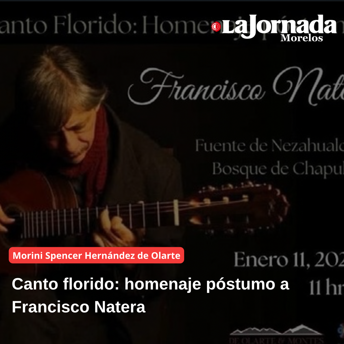 El próximo domingo 11 de enero, a la vera de la fuente de Nezahualcóyotl, que se encuentra en la primera sección del Bosque de Chapultepec, un nutrido grupo de artistas celebrarán la vida Francisco Natera, quien apenas falleciera el pasado 2 de noviembre. Francisco nació en la CDMX el 10 de enero de 1962, y desde niño mostró un intenso vínculo con la música, misma que lo llevó a estudiar piano y ópera en la Escuela Superior de Música del INBA. Integrante de los grupos Hojarasca y Camerata rupestre, de la cual fue fundador, Natera como cantautor de trova divulgó la poética propia y de amigos; con su guitarra y piano logró sonorizar su particular modo de comprender el mundo: crítico y esperanzado.