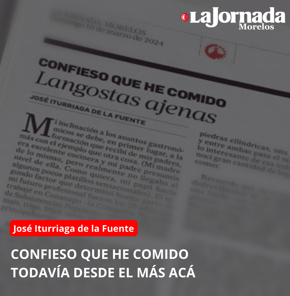 La mayoría de las confesiones gastronómicas que he venido publicando en La Jornada de Morelos son adaptaciones de textos que vieron la luz en 2011 en un libro que editó Conaculta (hoy Secretaría de Cultura federal). A partir del próximo artículo de mi columna “Confieso que he comido”, se tratará de textos inéditos que, al acumularse, esperarán la oportunidad de constituir un segundo tomo de mis memorias de tragón (tragaldabas, me decía mi mamá). Permítanme reproducir en seguida el prólogo de aquel libro que salió de las prensas hace ya trece años.