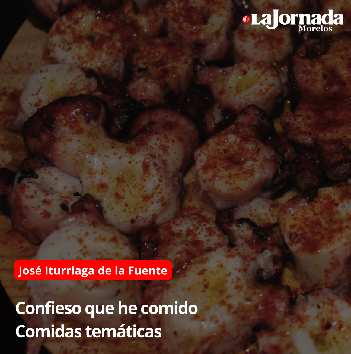 Hace tiempo organizamos una comida en nuestra casa a la cual asignamos el tema español. Edgar Assad se lució con unas tapas geniales: de aceituna negra molida con aceite de oliva y albahaca, de unas sardinitas con salsa roja especiada, de anchoas, de una especie de mousse de queso, todas preciosamente presentadas (como buen museógrafo que es), adornadas con algún toque particular: la tirita de jitomate, la hojita de perejil, el pellizco de orégano, la perlita de manzana. Susana y Roberto Riestra, espléndidos, aportaron jamón serrano en tal cantidad que al principio pareció exagerada, pero al paso de las horas se vio que tan fino producto jamás sobra. Alejandra se las ingenió para traer lo necesario a fin de armar unos pulpos a la gallega (con su pimentón, aceite de oliva y sal de grano), no obstante lo ocupada que está. Juan Pablo y Gabriela Picazo agregaron varias botellas de excelente Rioja para irrigar adecuadamente todo aquello. Jesús se vio muy bien con un queso manchego curado de oveja (de La Mancha de a deveras, no de la pareja del Lobo Feroz) y además preparó unas berenjenas deliciosas como para chuparse los dedos.