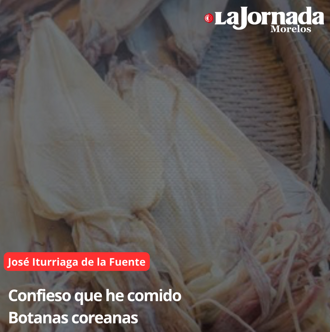 Resulta que Emiliano acababa de llegar unos días antes de Corea del Sur, donde fue invitado, junto con su amigo (y hoy socio) Sebastián Muñoz, a la Semana Global de Crecimiento Verde, organizada por el Programa de las Naciones Unidas para el Medio Ambiente (por cierto, que en las cuatro ediciones que llevaba el evento, hasta entonces ellos fueron los únicos estudiantes convocados –Emiliano de Ingeniería en Desarrollo Sustentable y Tian de Diseño Industrial, ambos de 22 años-). Fueron invitados a participar con una ponencia, alternando con reconocidos investigadores de todo el mundo; la propuesta que enviaron les valió no solo la aceptación, sino la invitación por cuenta de los organizadores. Mas lo que interesa ahora es que Emiliano aportó a esa comida en casa las botanas traídas de Corea: unos cuadritos delgados, como galletas, de alga marina por un lado y con piel de pescado seca por el otro, riquísimos; unos calamares pequeñitos deshidratados que eran duros, como chiclosos, de un gusto fuerte y muy sabroso aunque se batallara un poco para irlos comiendo; una especie de ate en cubitos, quizá de alguna fruta medio dulce, que estaba bastante bueno aunque lo esperábamos salado; y unas como hojas de alga marina con cierto sazón exquisito y muy original.