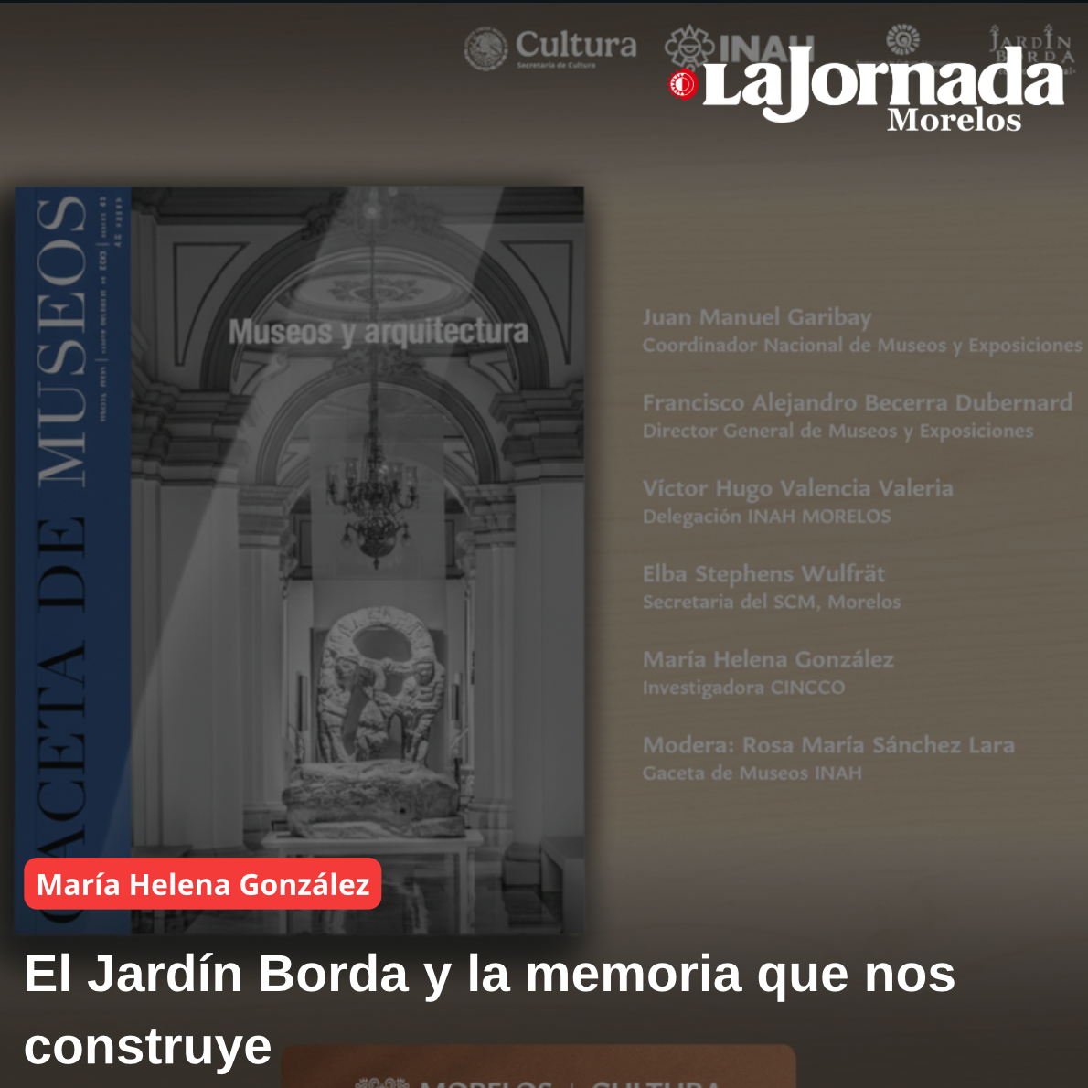 Este jueves 4 de diciembre se presentará en el Centro Cultural Jardín Borda La Gaceta de Museos del INAH, un nuevo número dedicado a la relación entre arquitectura, patrimonio y museos. Rosa María Sánchez Lara, coordinadora en esta ocasión de una de las publicaciones más relevantes del INAH se encargó de reafirmar la vocación que dio inicio a la publicación hace tres décadas: el análisis crítico, la divulgación bien hecha y la reflexión sobre los recintos culturales como espacios donde la historia se actualiza en cada visita.