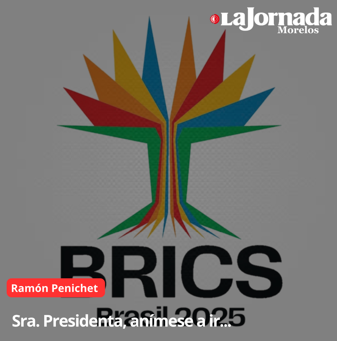 A la cumbre de los BRICS que se celebrará muy próximamente en Río de Janeiro, Brasil. Quizá ya tenga pensado asistir a esta reunión, pero por discreción de no herir las sensibilidades de otros socios de México, no se ha publicado hasta ahora tal noticia. Ojalá así sea. Si no, espero que este recordatorio de última hora la anime a reconsiderar su decisión.