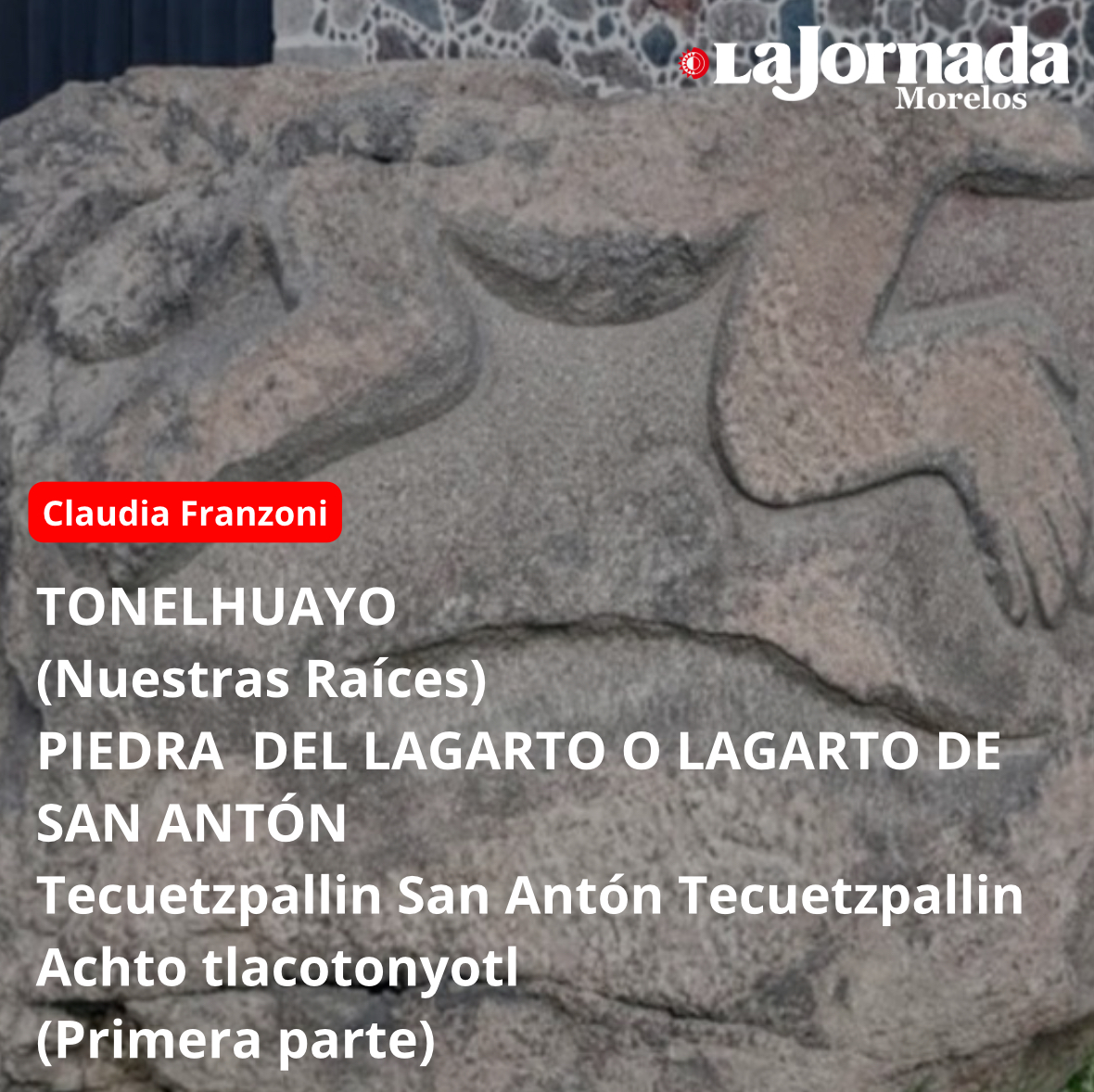 Este megalito ha sido estudiado por investigadores nacionales y extranjeros pero los 4 círculos no les decían nada, hasta que en este mismo poblado fue encontrada también una piedra llamada la Servilleta y al estudiarla vieron que era complemento del Lagarto, con lo que ya se podía leer una fecha completa llamada “4 Lagartija” “8 Caña”, esa fecha se confrontó con el disco calendárico que tenía el padre Veytia, dando como resultado una fecha europea “23 de mayo de 1487”.