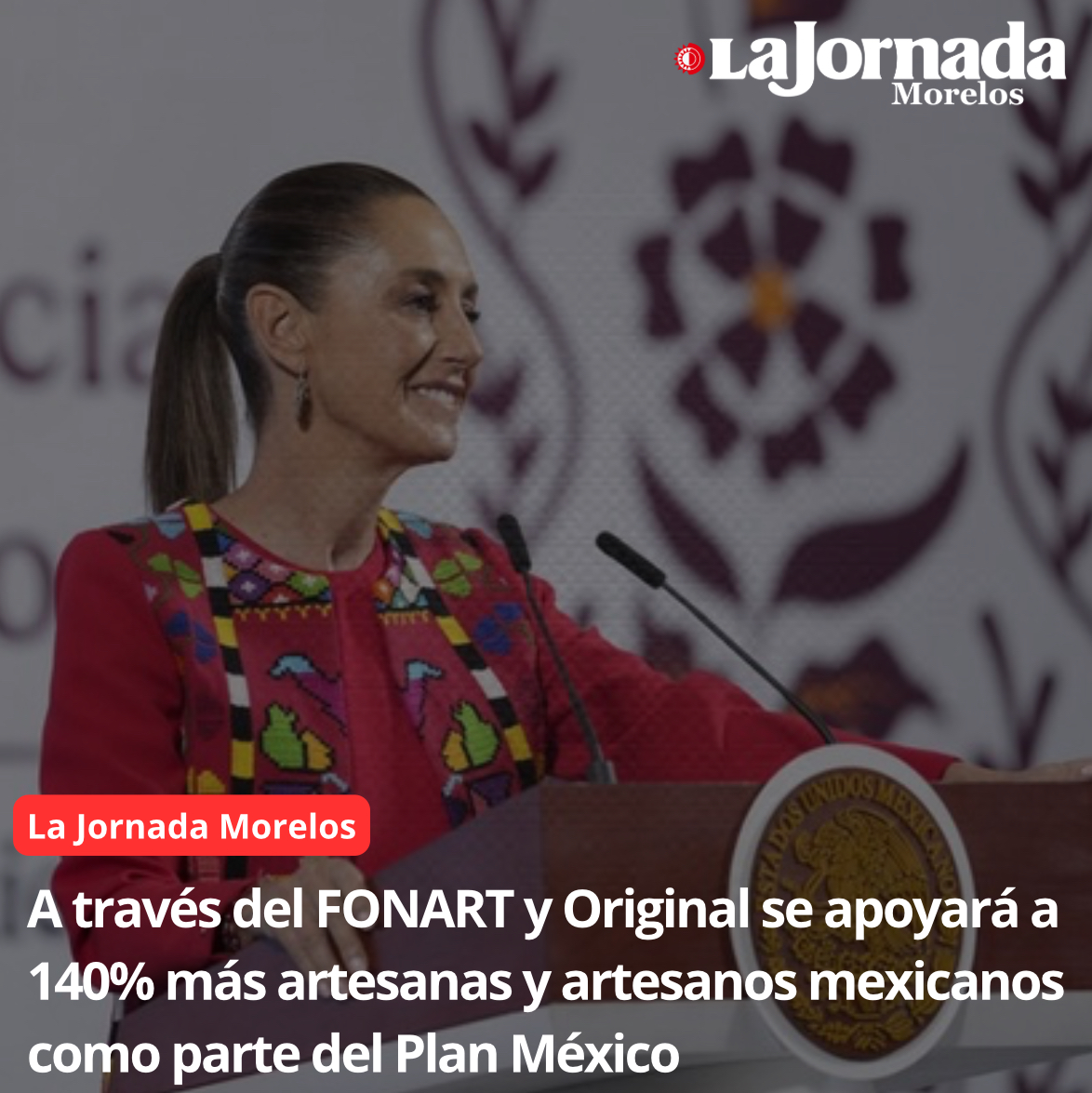 Como parte del Plan México, la Presidenta Claudia Sheinbaum Pardo presentó un proyecto integral de recuperación, apoyo y promoción que beneficiará a 140 por ciento más artesanas y artesanos mexicanos, a través del Fondo Nacional para el Fomento de las Artesanías (FONART) y de los encuentros Original, como parte del Plan México.
