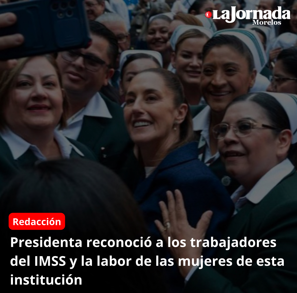 La Jefa del Ejecutivo Federal reconoció a las y los trabajadores de esta institución. pero particularmente a las mujeres que diariamente atienden a las y los derechohabientes. “Las mujeres sabemos que a veces nos toca la doble jornada o en general. Es decir, las enfermeras, las médicas, las trabajadoras del Instituto Mexicano del Seguro Social, además de atender con cariño a todos los derechohabientes, los centros de salud, los hospitales o los distintos lugares de trabajo, realizan el trabajo en sus hogares para fortalecer a sus familias. Así, que ¡vivan los, pero, sobre todo, las trabajadoras del Instituto Mexicano del Seguro Social!”, puntualizó.