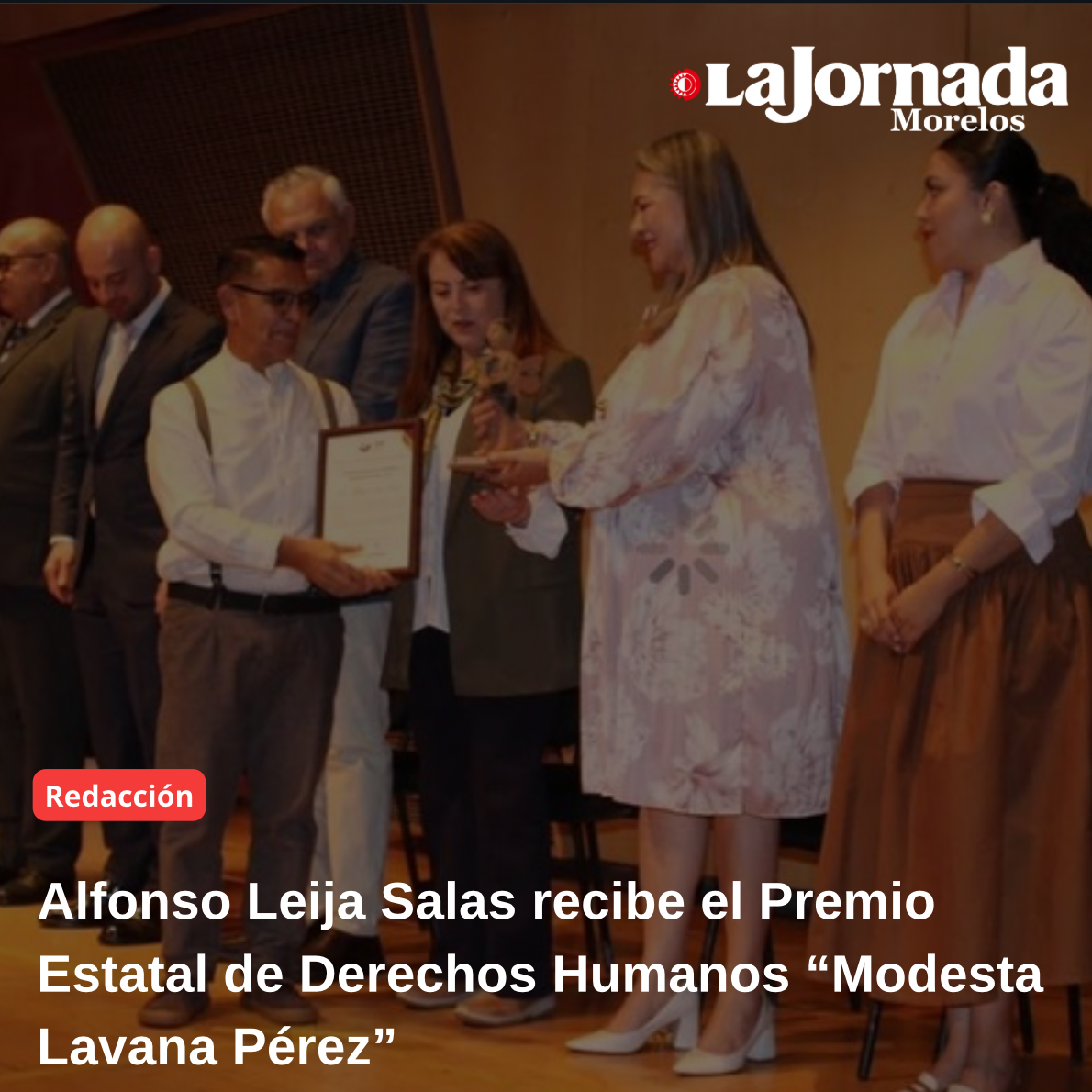 El galardón, otorgado por la Comisión de Derechos Humanos del Estado de Morelos (CDHM), se realizó en la Sala Manuel M. Ponce del Centro Cultural Jardín Borda; donde la presidenta de la CDHM, Nadxieelii Carranco Lechuga, presentó una semblanza de Alfonso Leija Salas, designado ganador por su destacada labor comunitaria, humanitaria y espiritual en favor de los grupos más vulnerables.