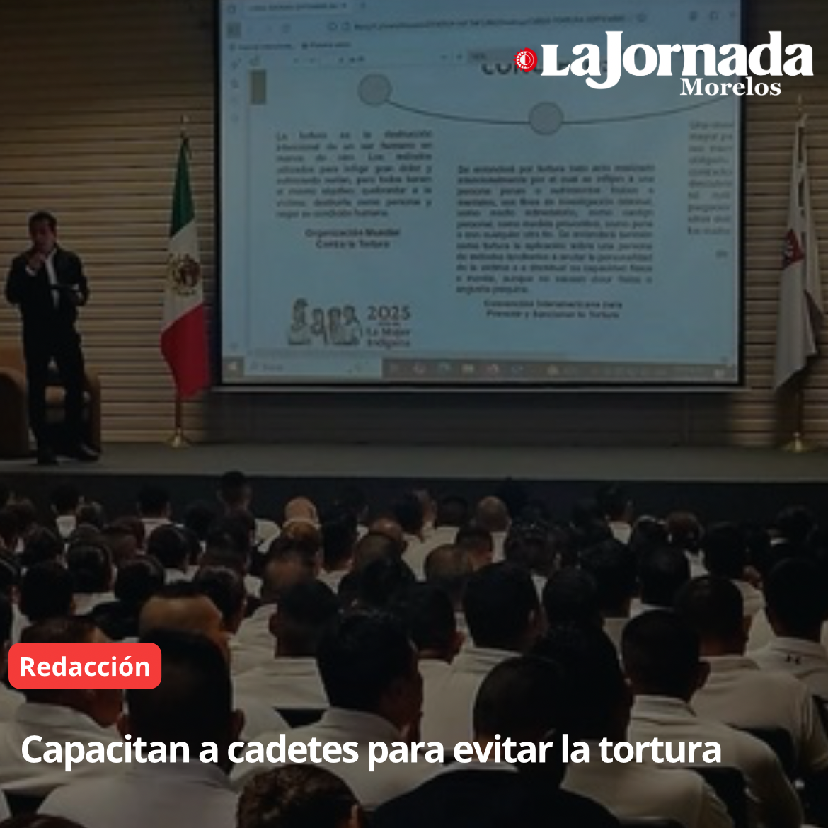 La Dirección General de Derechos Humanos de la Secretaría de gobierno de Morelos y la Dirección General de Estrategias para la Atención de Derechos Humanos de la Secretaría de Gobernación del gobierno federal, capacitaron a cadetes de la Academia Estatal de Estudios Superiores en Seguridad (AEESS) en prevención de la tortura para fortalecer la cultura de los derechos humanos.