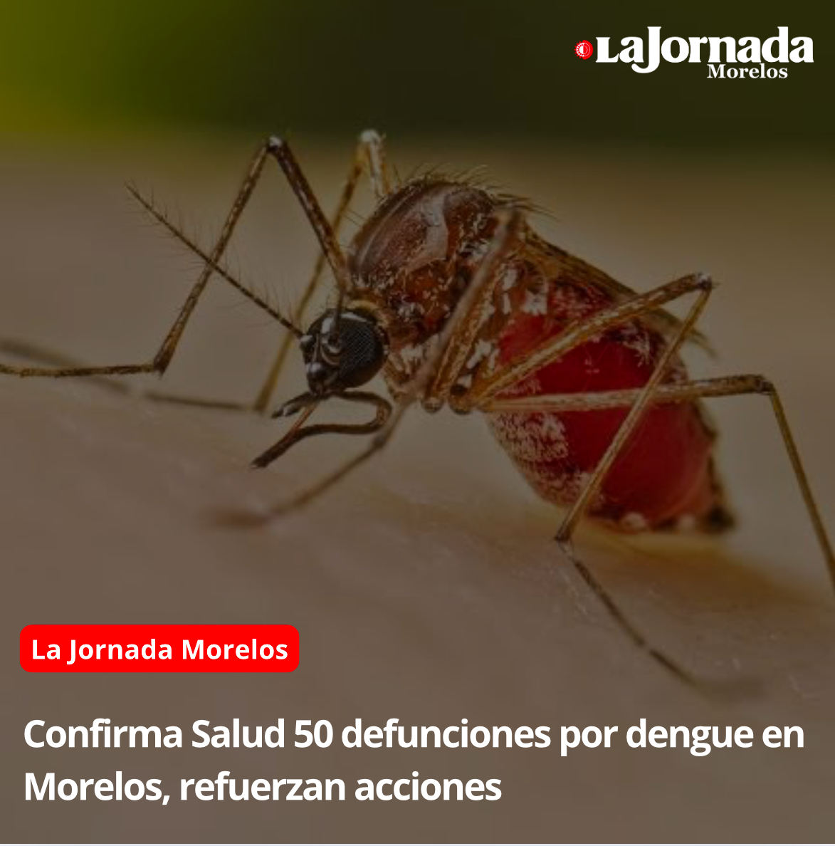 En la semana epidemiológica 45 del 2024, Morelos sobrepasó los 6 mil 200 casos de dengue ya confirmados por el Sistema Especial de Vigilancia Epidemiológica del gobierno federal, que también registra 50 defunciones asociadas al padecimiento en el estado, por lo que los Servicios de Salud de Morelos (SSM), reforzaron sus acciones de prevención y a la fecha han nebulizado 23 mil 417 hectáreas en los municipios de Jiutepec, Temixco, Jojutla, Cuautla, Ayala y Cuernavaca, como parte de las acciones para combatir el dengue, zika y chikungunya.