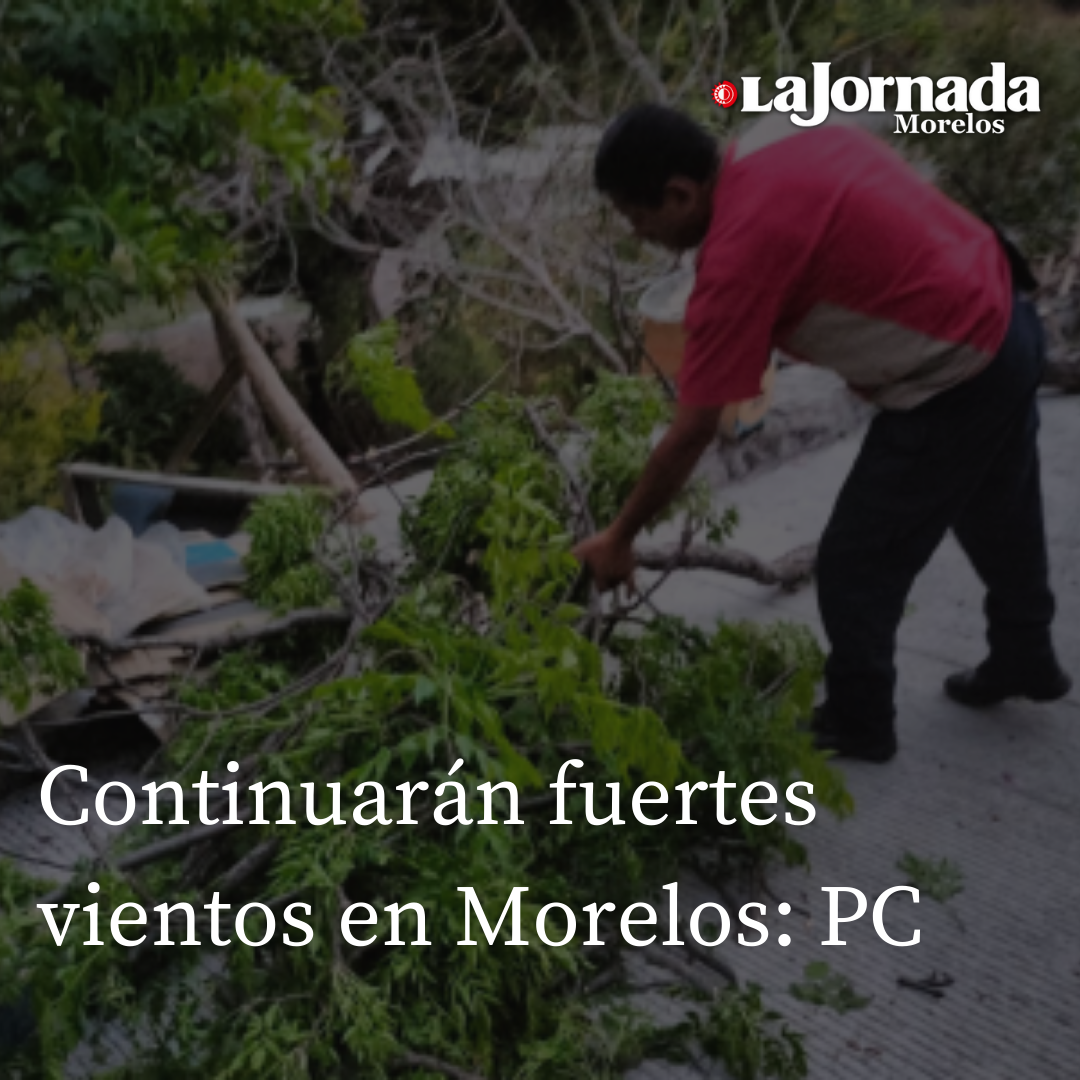 La Coordinación Estatal de Protección Civil confirmó que durante los próximos días continuarán los fuertes vientos en Morelos, cuyas ráfagas podrían alcanzar los 45 kilómetros por hora, y que hasta el momento han ocasionado caídas de árboles en Xochitepec y la autopista México – Cuernavaca.