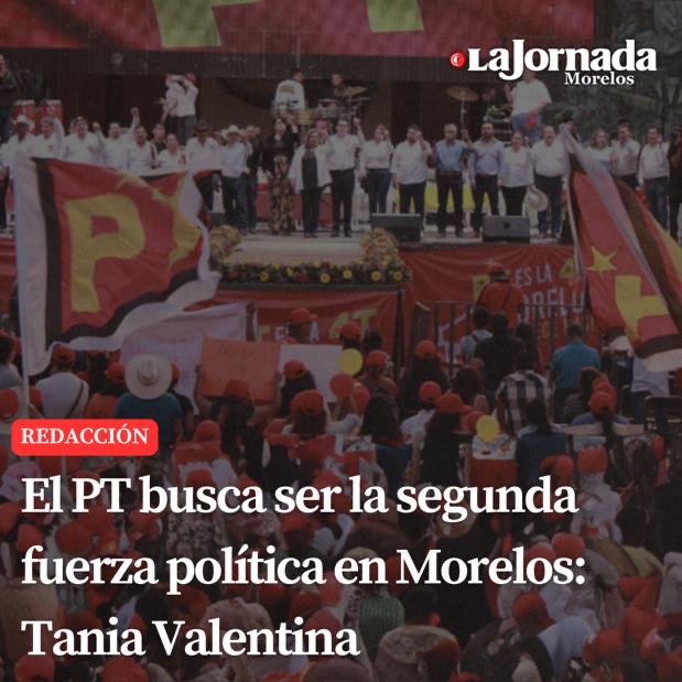 La diputada Tania Valentina dirigente del Partido del Trabajo, compartió los logros del partido en el estado de Morelos y trazó una ambiciosa meta para las próximas elecciones, esto después de la reunión estatal de Coordinación y Estructura donde se reunieron más de 10 mil petistas de diversos municipios de la entidad, donde tomaron decisiones importantes que marcan el rumbo de dicho Instituto Político y la convicción de elevar el porcentaje electoral para los comicios del 2024.