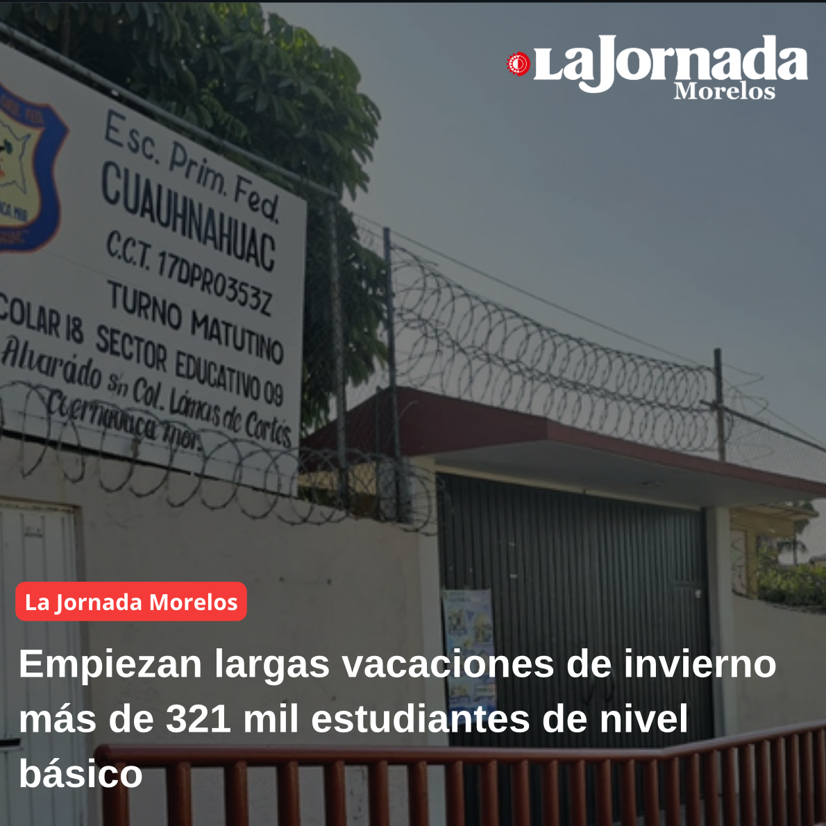 A partir del lunes 22 de diciembre de 2025 iniciará el periodo vacacional decembrino para las comunidades educativas de los niveles básico, medio superior y superior en Morelos, informó el Instituto de la Educación Básica del Estado de Morelos (IEBEM). En el caso de educación básica, el regreso a clases para estudiantes está programado para el 12 de enero de 2026.