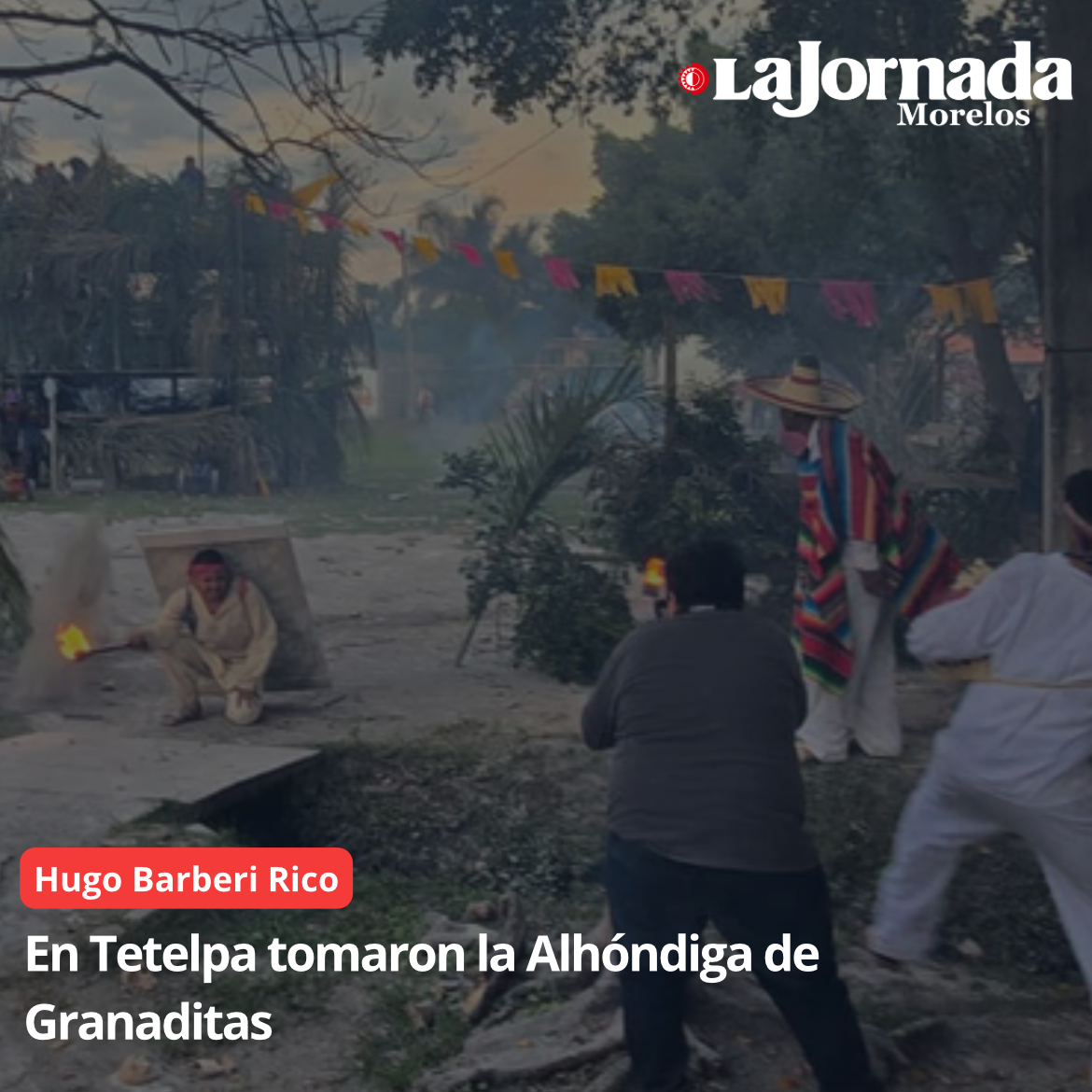 Con “cañonazos”, cuyo estruendo cimbra el suelo y ensordece por segundos a los mirones, “cuetes”, “chifladores”, una variedad de buscapiés, maldiciones y sobre todo el fuerte impacto de tamales de ceniza sellados con papel y “cinta canela”, es como escenifican más de 160 actores la obra de teatro de pueblo de “La Toma de la Alhóndiga de Granaditas”, tres enfrentamientos que a ratos se convierten en batallas campales en la comunidad indígena de Tetelpa de Zacatepec.