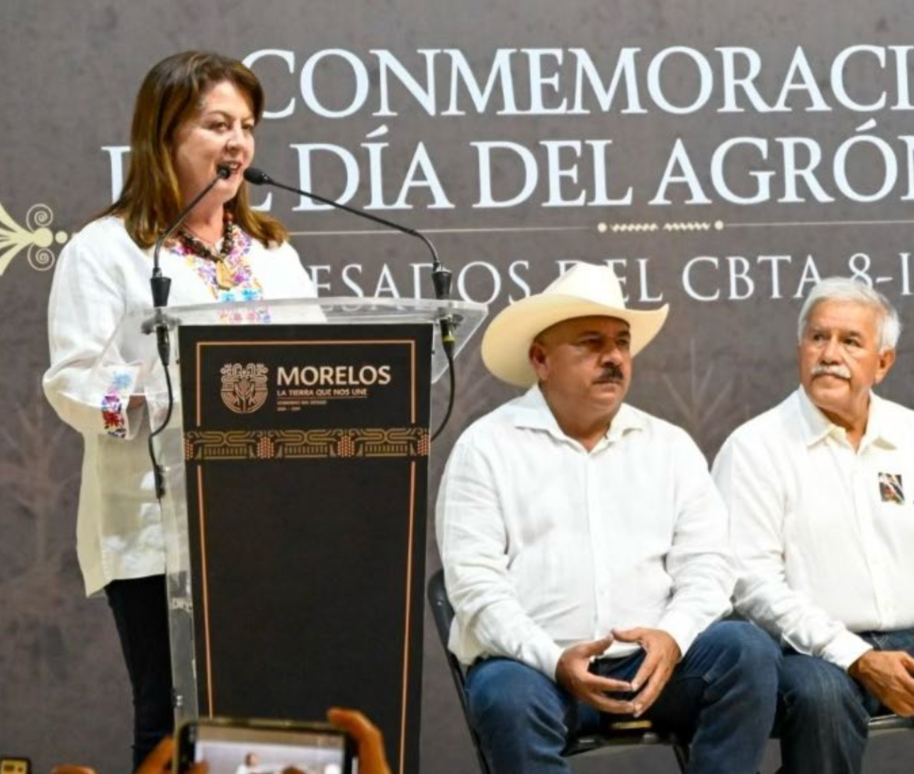 La gobernadora, Margarita González Saravia presidió en Miacatlán la celebración del Día del Agrónomo, en la que reiteró la promesa de inversión para el campo morelense. Foto: Cortesía