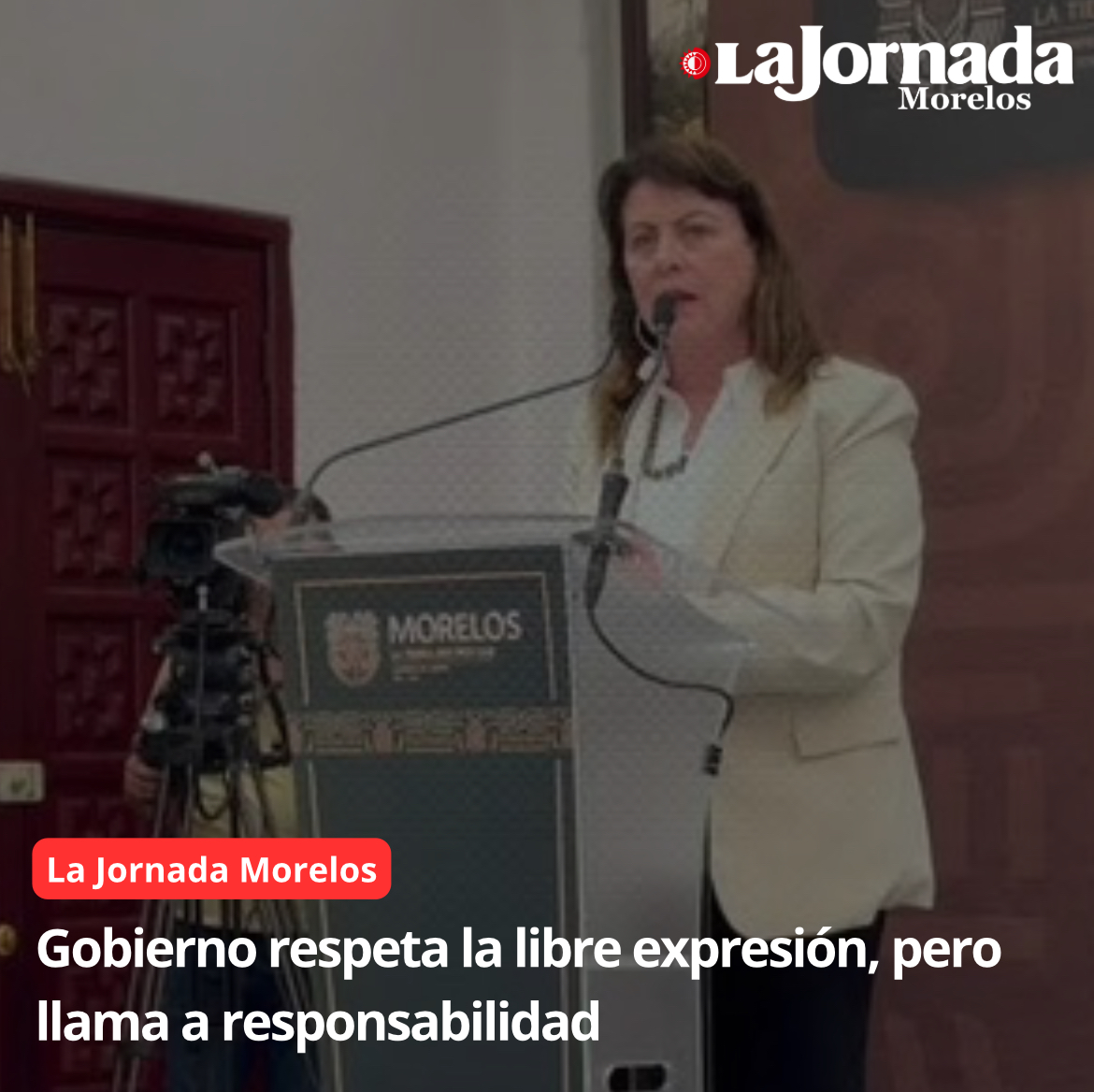 “Somos un gobierno totalmente democrático que respeta la libertad de expresión y yo estoy totalmente en contra de castigar a ningún medio de comunicación”, aseguró la gobernadora, Margarita González Saravia, aunque llamó a ser responsables en la información que se da especialmente a través de las redes sociales. al referir a la propuesta de ley presentada en el Congreso de Morelos por la que se busca sancionar la difamación digital.