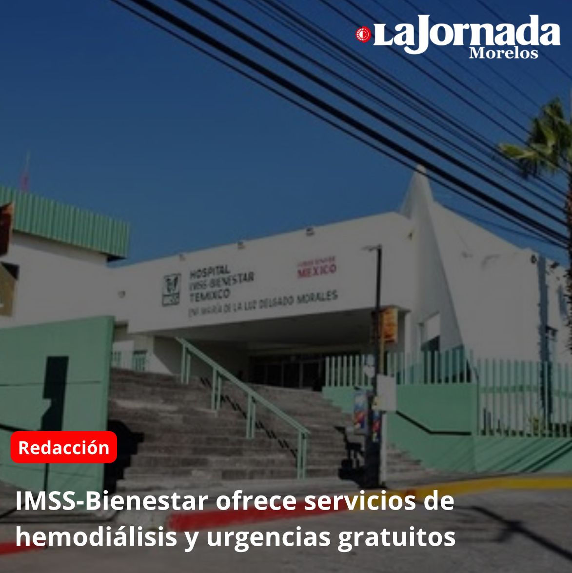 La Coordinación Federal del IMSS-Bienestar en Morelos informó que la Unidad de Especialidades Médicas (UNEME) de Hemodiálisis, el Centro Regulador de Urgencias (CRUM), la Unidad de Evaluación y Diagnóstico de Obesidad Infantil (UEDO), así como el Centro de Atención para la Salud de la Mujer (CAPASAM) continúan operando con normalidad. Por lo que invitó a todas las personas que no cuentan con seguridad social a aprovechar estos servicios, que son gratuitos y de carácter universal.