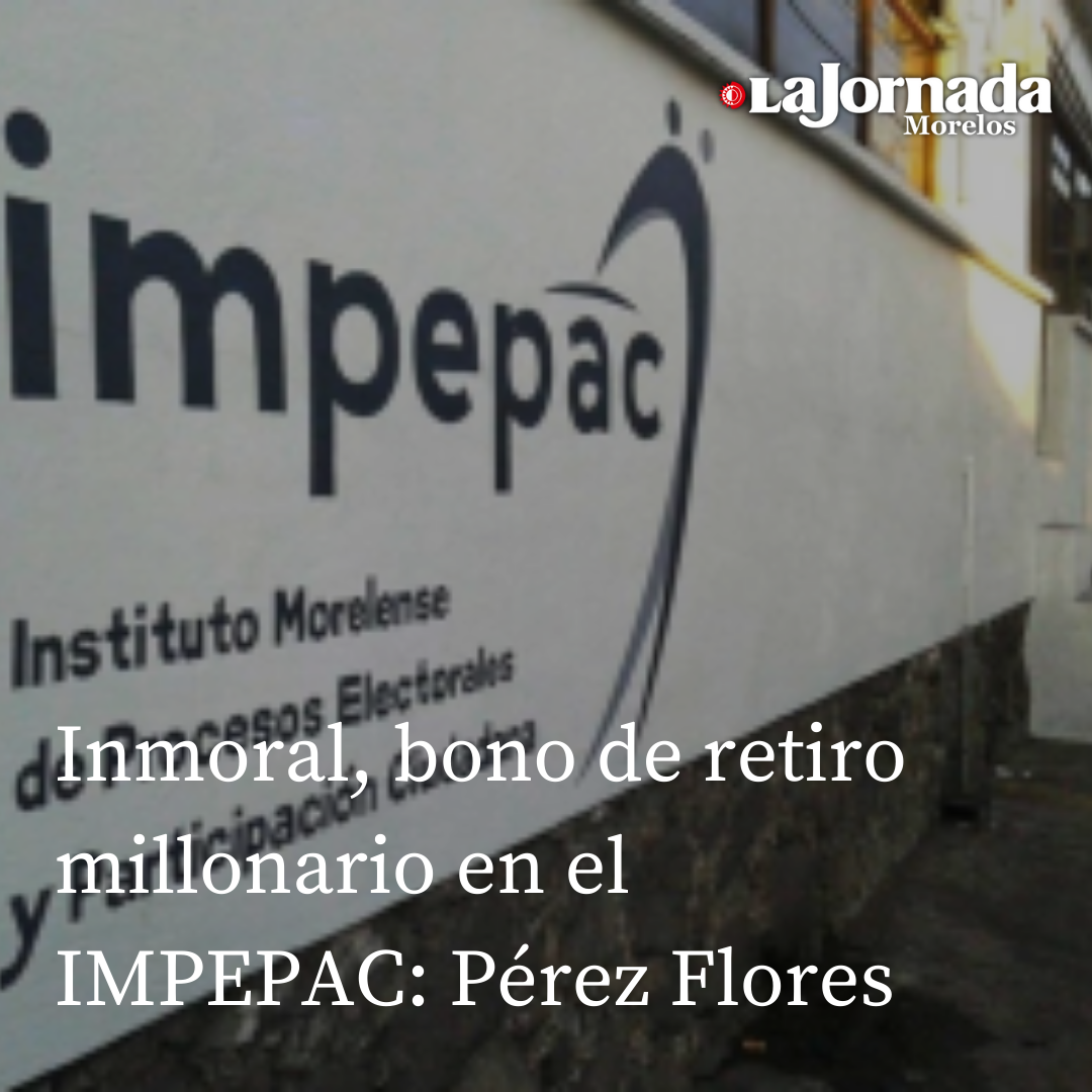 Es “inmoral” el bono que se aprobaron consejeras y consejeros del Instituto Morelense de Procesos Electorales y Participación Ciudadana (Impepac), sostuvo el diputado morenista Arturo Pérez Flores tras destacar que justo por ese tipo de acciones se impulsó el plan B.