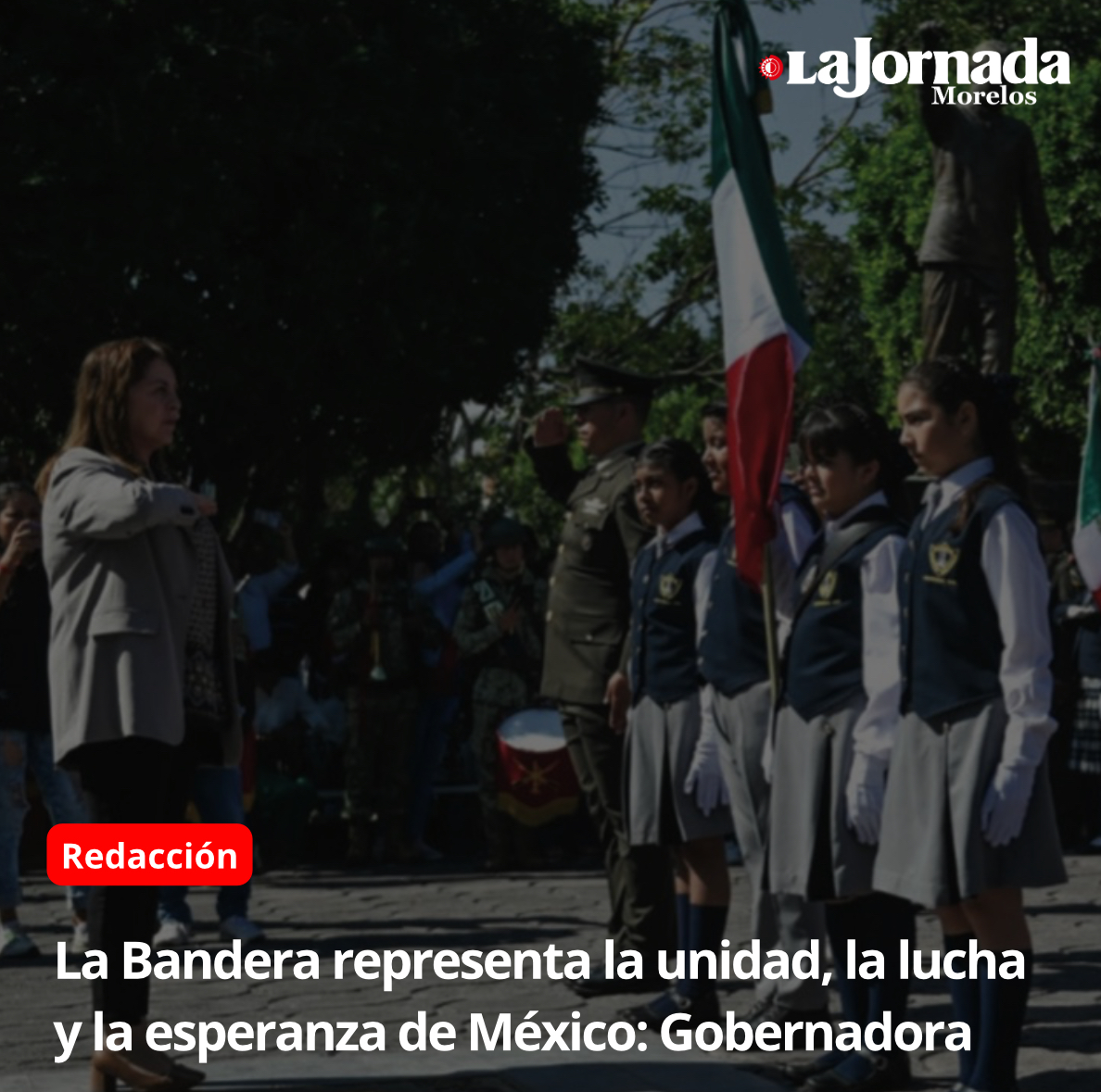 Este Día de la Bandera, la gobernadora del estado de Morelos, Margarita González Saravia encabezó los honores e izamiento del lábaro patrio en la Plaza Cívica Mariano Matamoros, ubicada en el municipio de Jantetelco, donde abanderó a 25 escoltas de escuelas públicas de la región oriente de la entidad.