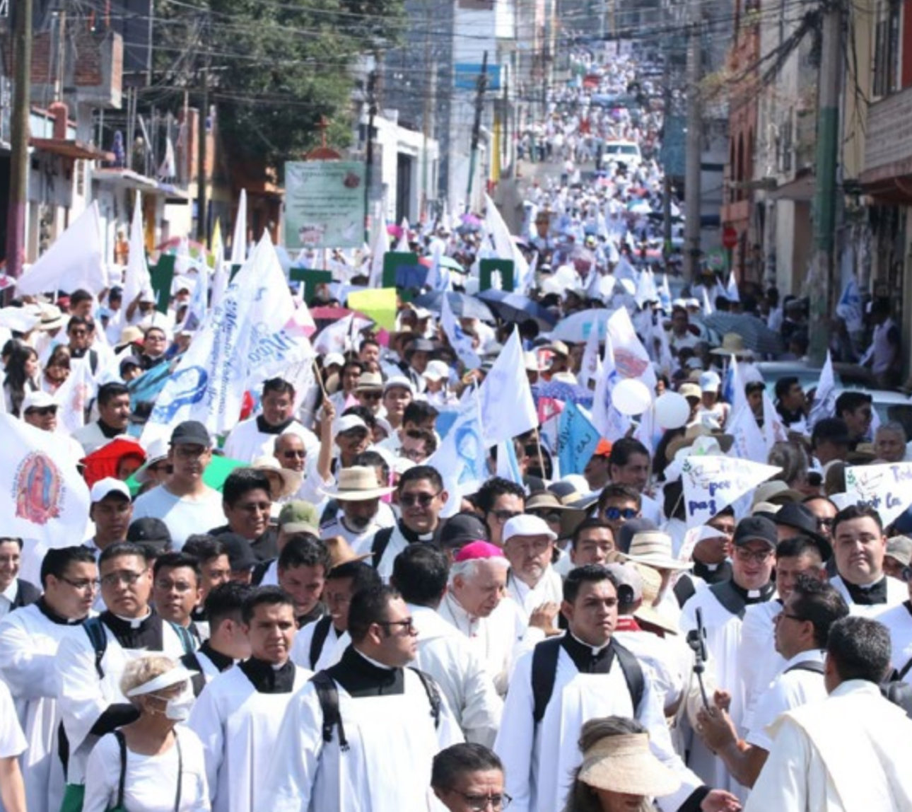 La Décima Caminata por la Paz, realizada este sábado en las principales calles de Cuernavaca, arrancó desde El Santuario de Tlaltenango, situado al norte de la ciudad, y que de acuerdo a la Diócesis de Cuernavaca participaron más de 20 mil personas todas vestidas de blanco.