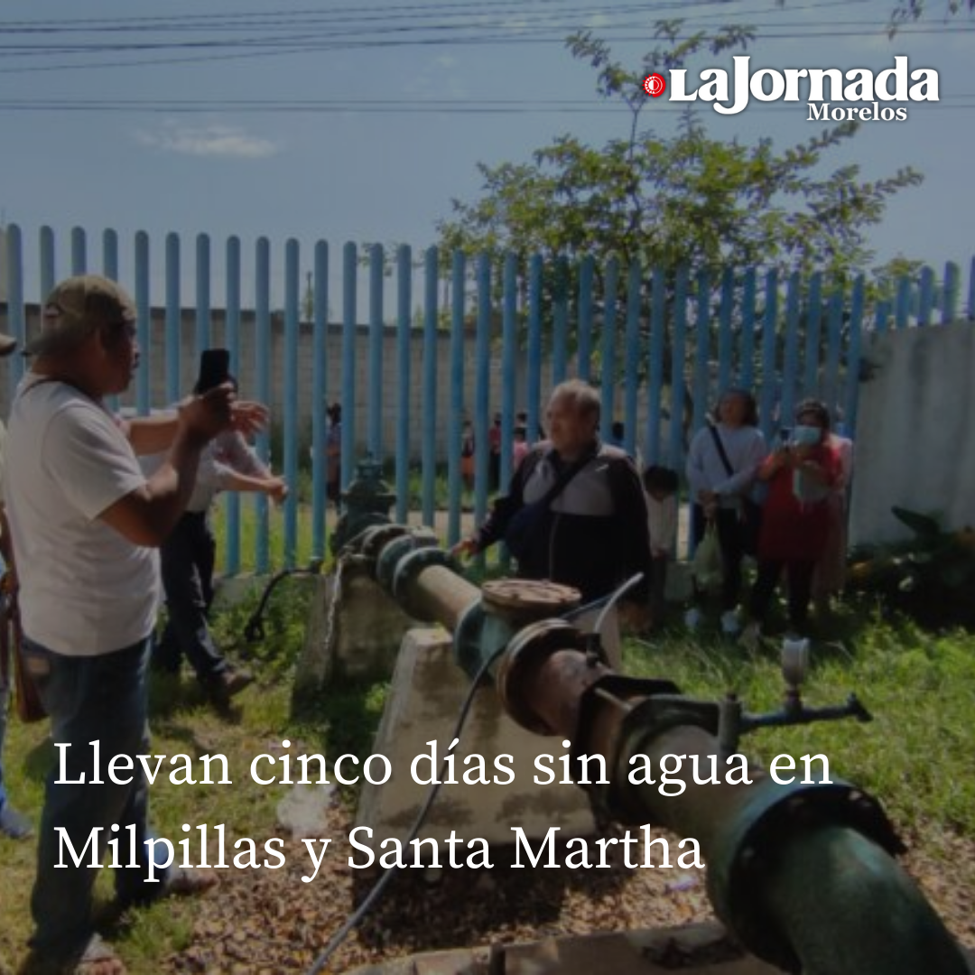 Por cinco días consecutivos vecinos de las colonias Milpillas, Santa Martha y Tulipanes, han carecido de agua a pesar de que el Sistema de Agua Potable y Alcantarillado de Cuernavaca (Sapac) se comprometió a reponer la bomba que abastece a más de mil familias.