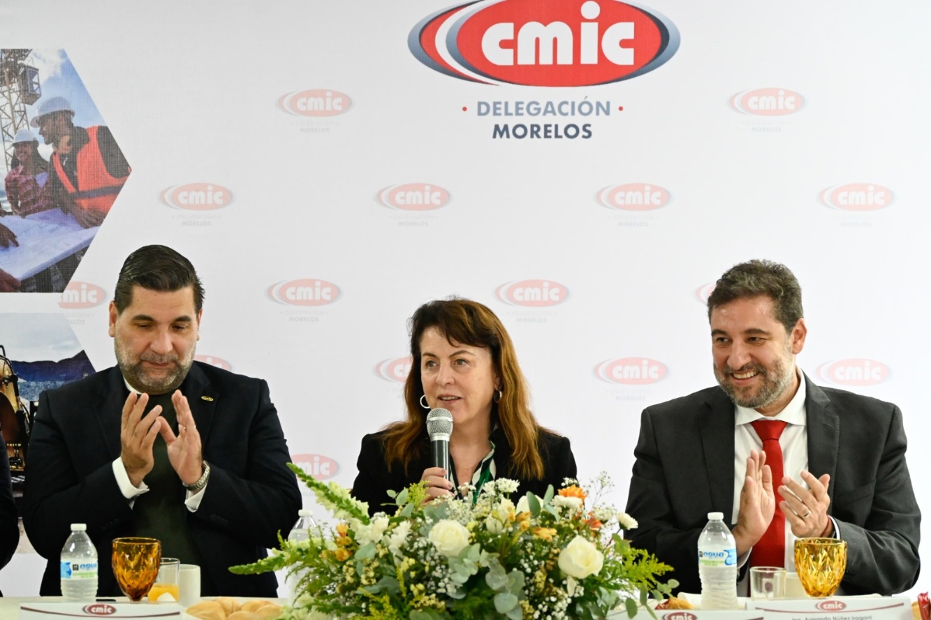En el encuentro, que contó con la presencia del presidente municipal de Cuernavaca, José Luis Urióstegui Salgado, así como de integrantes de la CMIC, la gobernadora destacó que este año se han iniciado grandes proyectos con el respaldo del Gobierno de México, como el “Circuito Tierra y Libertad”, que contempla cientos de kilómetros alrededor de la entidad, con el objetivo de ofrecer caminos seguros a la población. También mencionó el programa de rehabilitación, modernización y tecnificación del Distrito de Riego 016, en beneficio de 23 mil hectáreas dedicadas al cultivo de granos básicos, hortalizas, frutas y verduras.