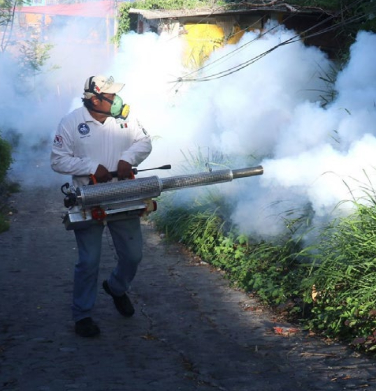 Y asegura que “se tienen disponibles 12 vehículos con máquina pesada y 30 equipos ligeros que se utilizan a pie, mismos que han aplicado insecticida en dos mil 74 manzanas con termonebulización”.
