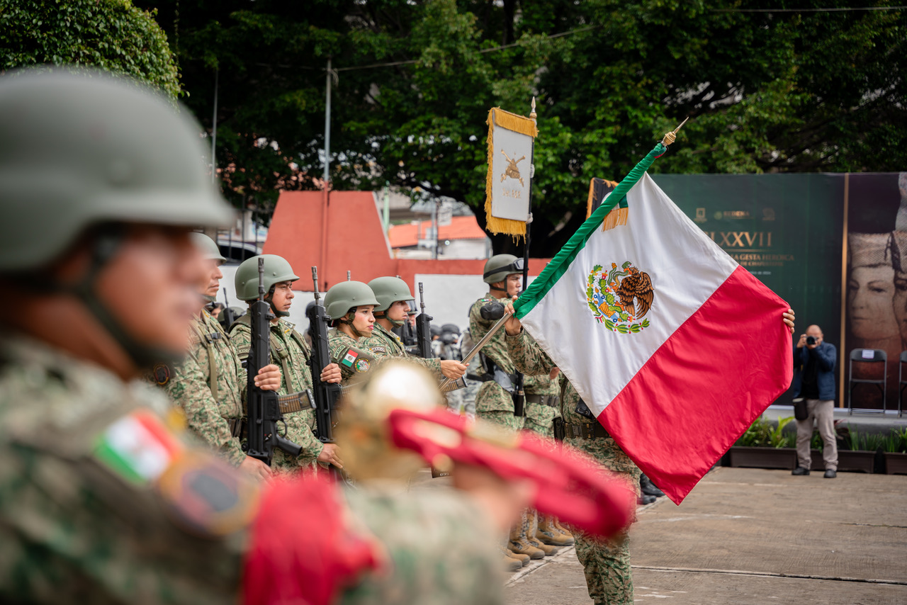 En su intervención, el general de brigada diplomado de estado mayor, Francisco Justo Toscano Camacho, hizo una reseña de lo que pasó hace 177 años, puntualizando: “nadie duda que esta gesta fue catalizador para acelerar la unidad nacional y el amor a nuestro país, representa un sublime acto que historia alguna pueda jamás conocer, historia que es nuestra, historia que es viva, historia que nos motiva día a día, que es un acto de amor de la juventud de ayer, que representa un ejemplar regalo para la juventud mexicana de hoy”.