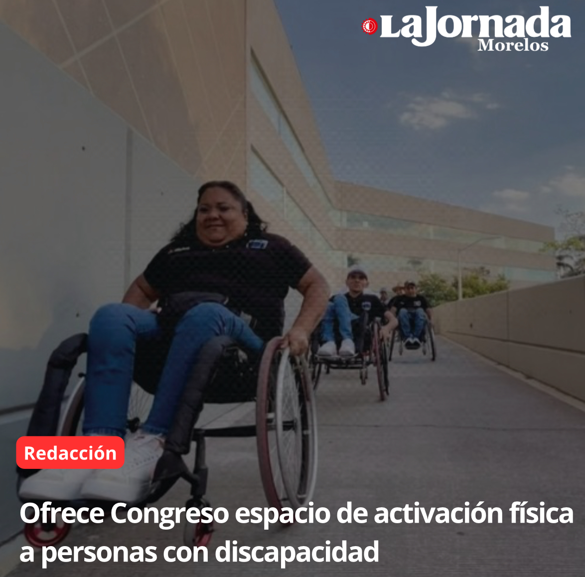 Como parte de una gestión realizada por el coordinador del Grupo Parlamentario de Morena en el Congreso del Estado de Morelos, Rafael Reyes, personas con discapacidad en silla de ruedas realizan actividad física en las instalaciones del recinto legislativo ubicado en el municipio de Cuernavaca.