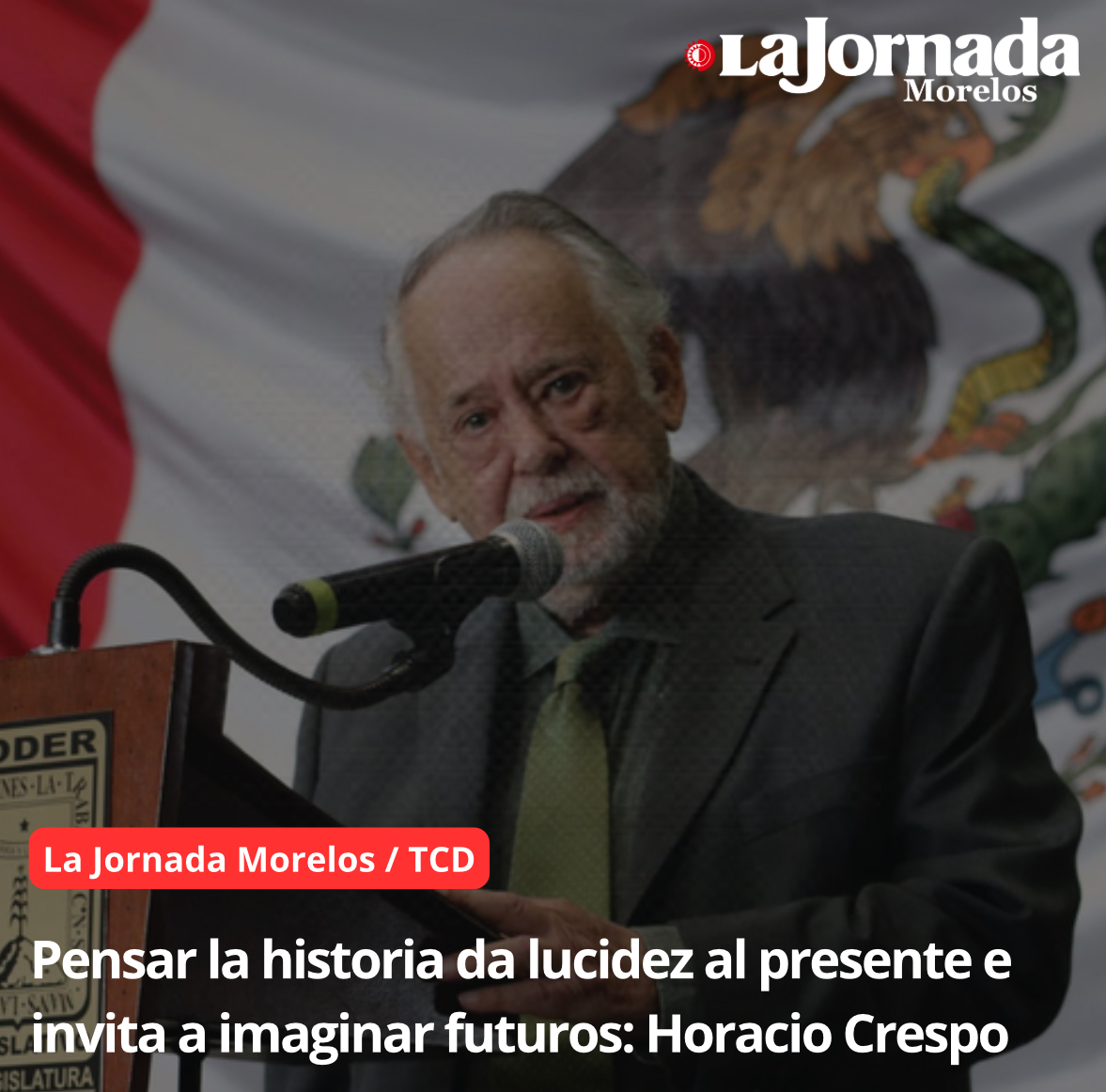 El historiador Horacio Alberto Crespo Gaggiotti, investigador de la Universidad Autónoma del Estado de Morelos, aseguró desde la tribuna del Congreso del estado, que “pensar críticamente el pasado contribuye a una mayor lucidez en la percepción del presente, y también quizá sea esta dimensión e invitación fundamental para imaginar proyectos de futuros deseables, tan diversos como creativos”.