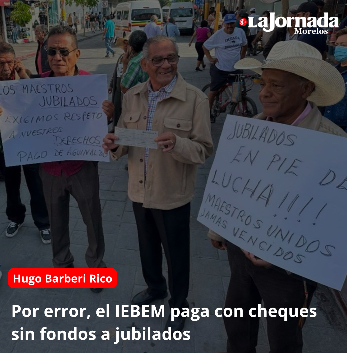 Al denunciar que les extendió “cheques de hule” el Instituto de Educación Básica del Estado de Morelos (IEBEM), profesores jubilados se manifestaron ayer por la mañana con el cierre de una de las calles más importantes de Jojutla, la “Josefa Ortiz de Domínguez”.