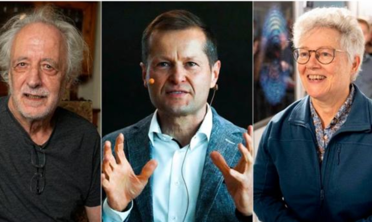 Piere Agostini, Ferenc Krausz y Anne LHuillier, galardonados con el Nobel de Física de 2023. Foto: AP PHOTO/TT NEWS AGENCY VIA AP