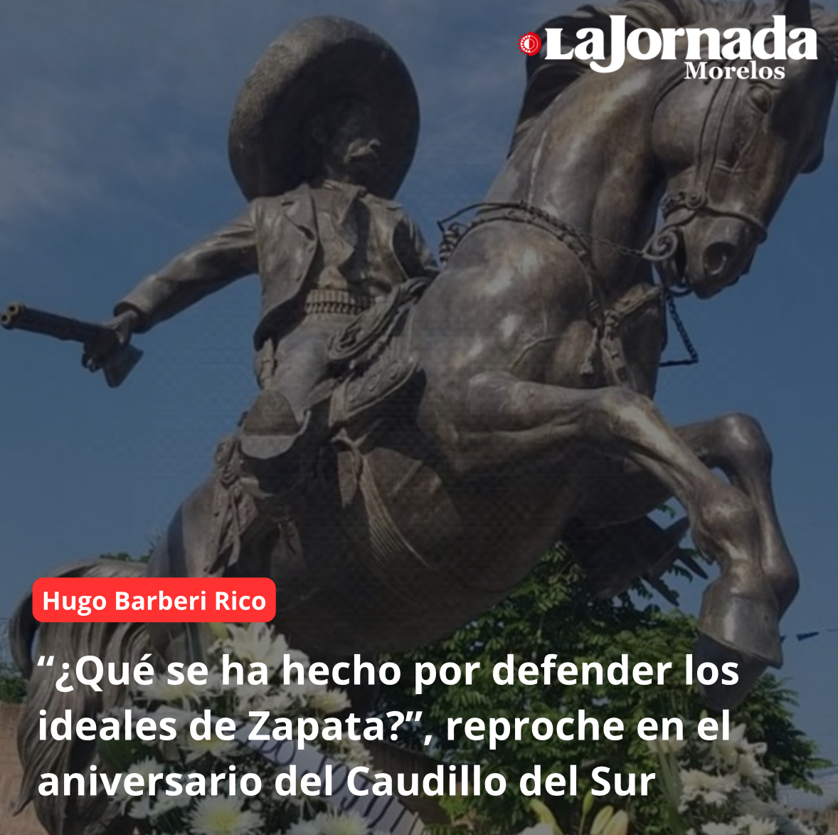 Emiliano Zapata, es un personaje que ha generado polémica desde su vida y que la sigue generando, porque no se han concretado los ideales que lo llevaron a levantarse en armas, “nos deja un legado que no ha sido cumplido. Hay todavía una deuda de los gobiernos con los campesinos, quienes nos dan de comer con su trabajo, con su sudor, con su sufrimiento, con sus carencias, con los campesinos que son también víctimas de sus líderes corruptos que los explotan representándolos o los representan explotándolos, de los gobiernos que no hacen lo suficiente para financiar al campo para modernizarlo y que no generan los precios de garantía, ni la planeación suficiente para lograr la tan anhelada autosuficiencia alimentaria”, expresó el recopilador histórico Jesús Zavaleta Castro, entrevistado al término del evento realizado frente la estatua ecuestre del otrora jefe del Ejército Libertador del Sur.