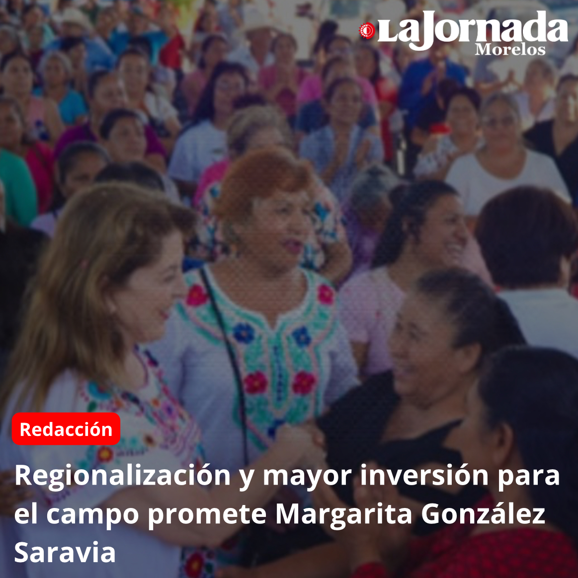 Margarita González Saravia, gobernadora electa de Morelos, visitó el municipio de Axochiapan donde se comprometió a ampliar el presupuesto destinado al desarrollo agropecuario del estado y a impulsar un plan hídrico integral que promueva el crecimiento del campo en el estado.