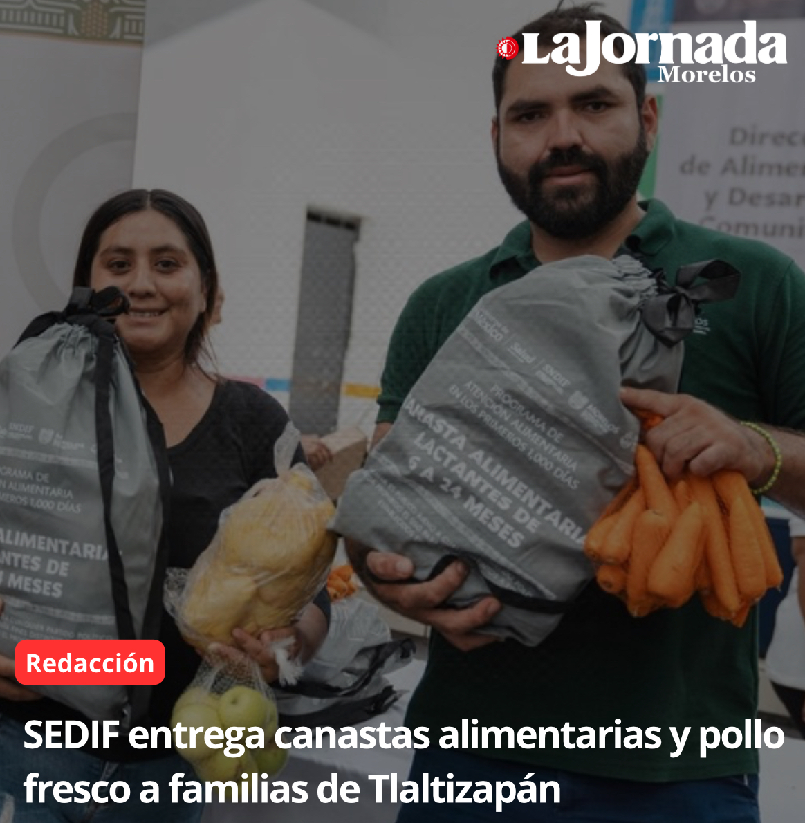 Con una inversión de 201 mil 856 pesos de recurso federal, el Sistema para el Desarrollo Integral de la Familia del Estado de Morelos (SEDIF) entregó canastas alimentarias y pollo entero fresco a beneficiarios de los Programas de Atención Alimentaria Primeros 1000 Días y Personas en Situación de Vulnerabilidad, en el municipio de Tlaltizapán de Zapata. La entrega corresponde a los meses de julio y agosto, por lo que cada persona beneficiaria recibió dos canastas, una por mes.