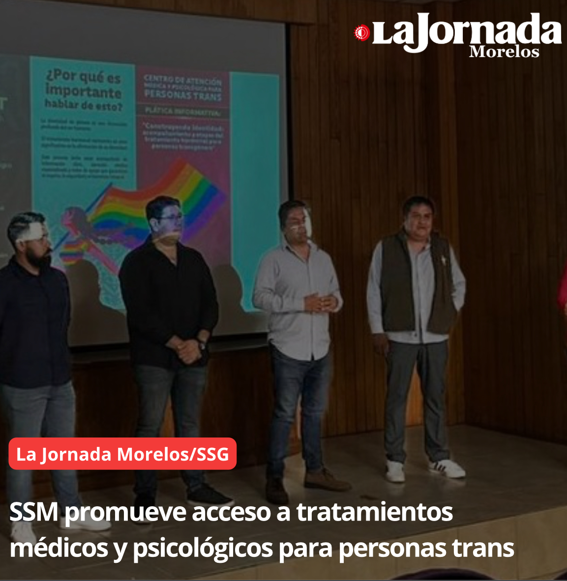 Más de 10 instituciones y colectivos participaron en la plática “Construyendo identidad: acompañamiento y etapas del tratamiento hormonal para personas transgénero”, organizada por Servicios de Salud de Morelos (SSM) y la Dirección General de Derechos Humanos y Diversidad Sexual. Como parte de los esfuerzos de la Secretaría de Salud por fortalecer la atención integral a la comunidad trans y asegurar la canalización adecuada de casos hacia instancias especializadas en todo el estado.