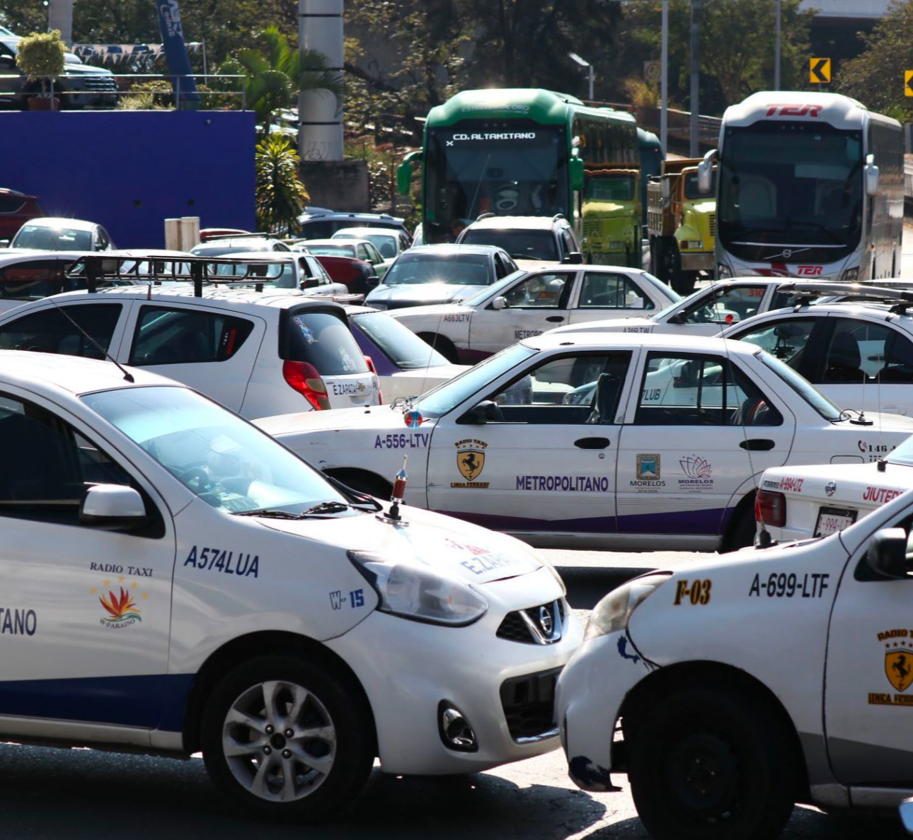 Para esta ocasión, no importó a qué línea pertenecieran; más de un centenar de taxis y radiotaxis participaron en los bloqueos a la vialidad de entrada a Cuernavaca por Temixco, y en la principal avenida de la zona oriente de la ciudad.
