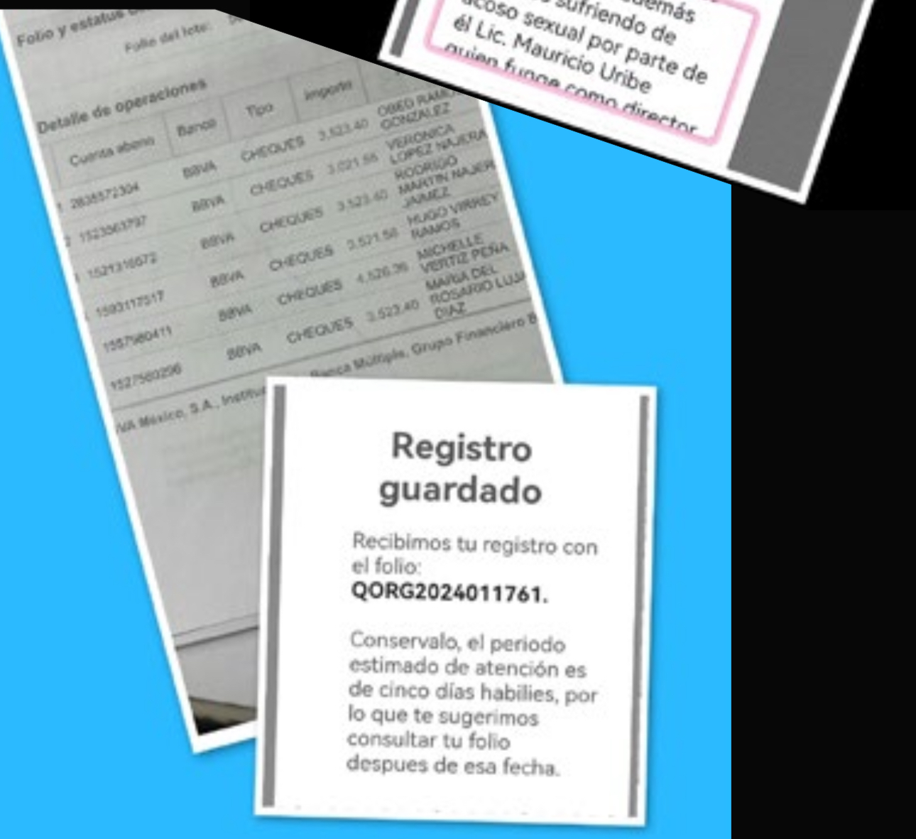 Los trabajadores también acusaron a Mauricio Uribe, director de Finanzas, de acoso y molestia en contra de mujeres de las 3 direcciones que corresponden al CCyTeM, que fueron denunciados ante Andrea Ramírez Paulín y Adrián Medina Canizal, sin embargo, “este último solicitó a las víctimas que no dijeran nada o serían despedidas puesto que a la secretaria Ana Cecilia Rodríguez esos asuntos le molestaban mucho por el escándalo en su administración y no por el hecho de la sororidad con las mujeres acosadas y que lejos de ser ayudadas jamás volverían a trabajar en Gobierno del Estado de Morelos”.