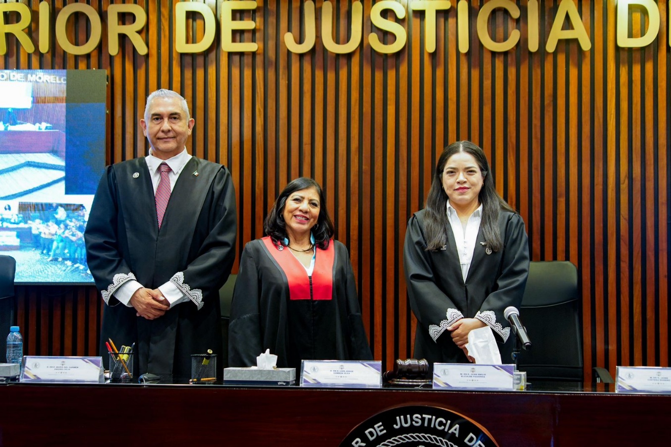Javier Mújica Díaz, María del Carmen Aquino Celis y Nancy Giovanna Montero Mercado forman la primera terna propuesta por el Poder Judicial para designar la presidencia del Tribunal Superior de Justicia. La propuesta aún debe ser validada por el Congreso de Morelos. Foto: Especial